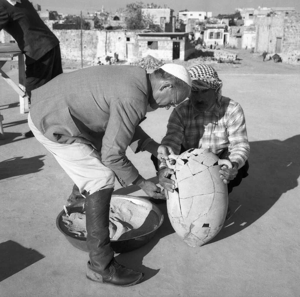 Billedet viser P.J. Riis, under udgravningen af Tell Sukas. Riis var initiativtageren og lederen af udgravningsprojektet i Tell Sukas.