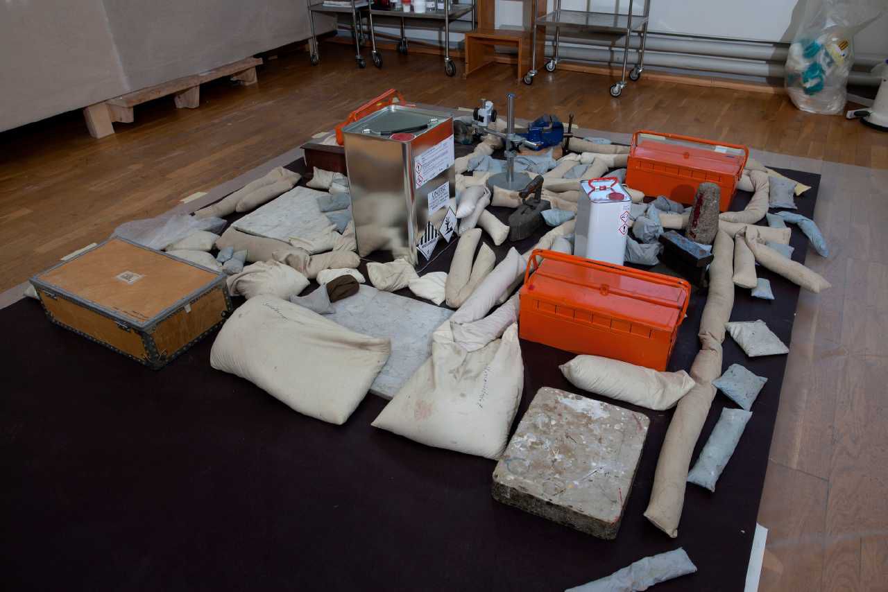 Konservering og restaurering af Sigurd Swane Malerier. Arbejdsprocesserne begynder med billede 1, 2, 3, 4, 5 osv.