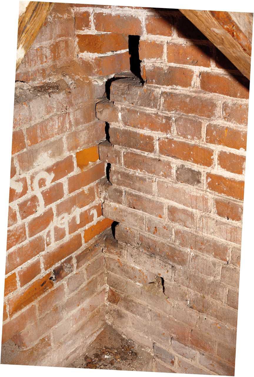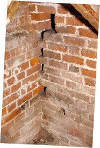 Sammenstød ml. nordre højkirkemur og nordre sideskibs gavltrekant. Skt. Nikolaj, Middelfart