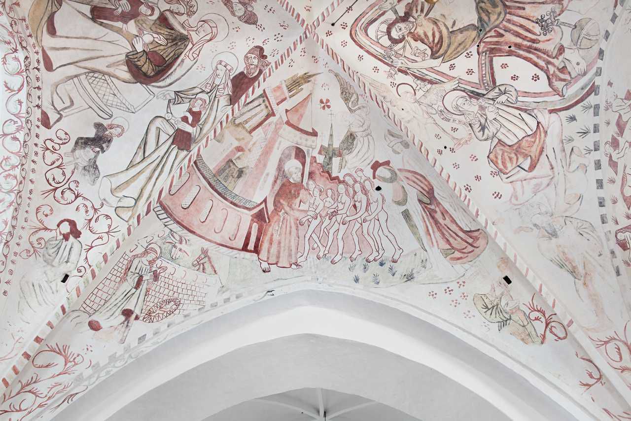 Kalkmalerier på nordkappen af skibets østlige hvælv, o. 1525. Sanderum Kirke