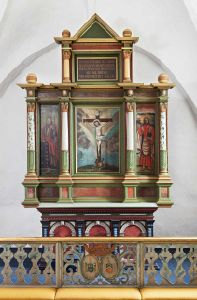 DK Ringkøbing 1749, fig. 24. Altertavle med alterbordspaneler.