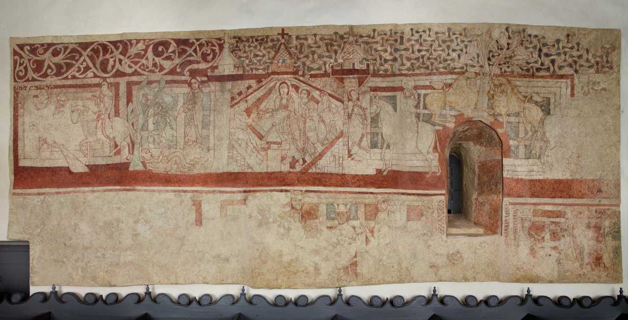 Ferring Kirke. Kalkmaleri / aftraek. Genrestaurering.