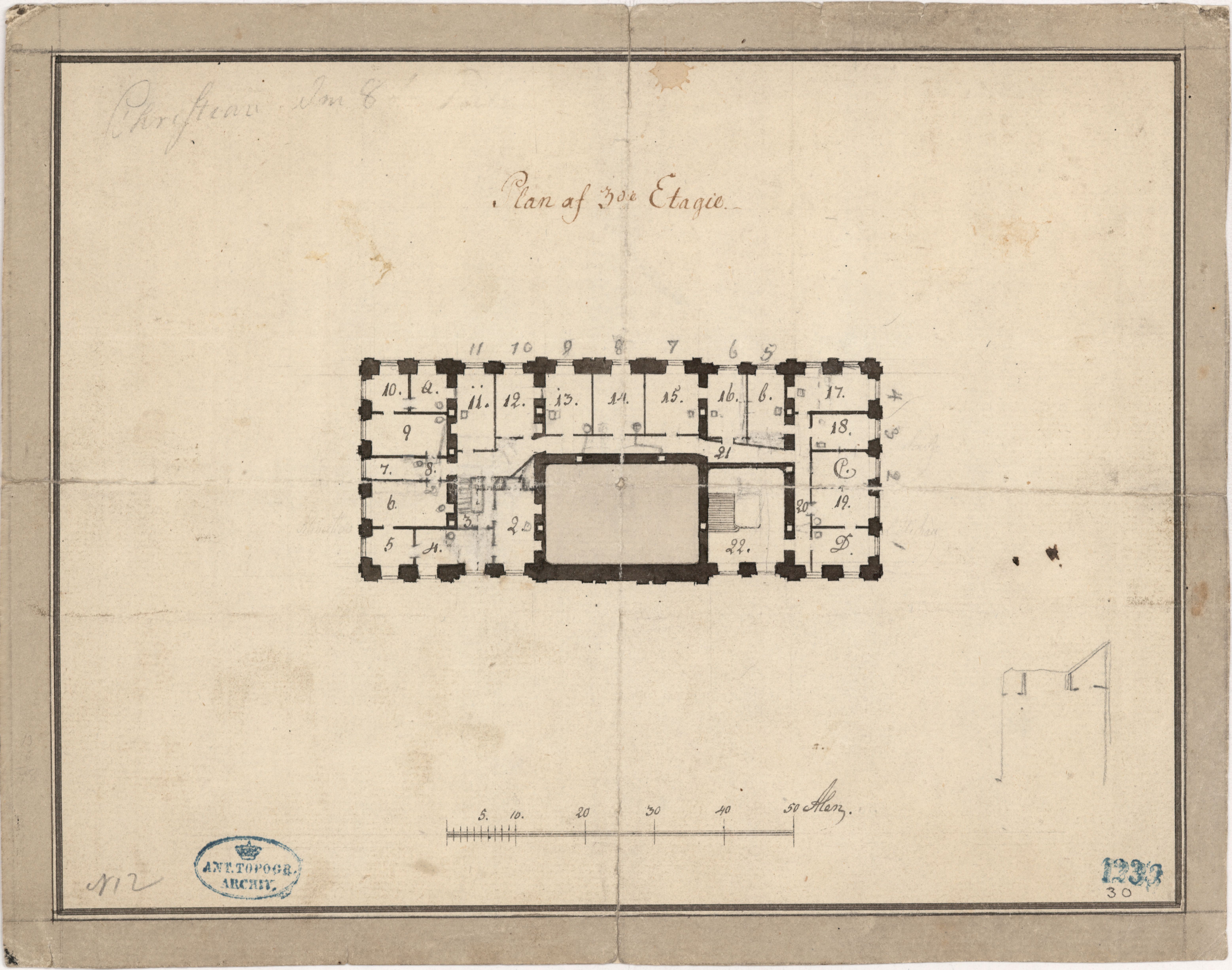 Amalienborg. "Plan af 3de Etage", "Christian den 8". (Levetzaus Palæ)