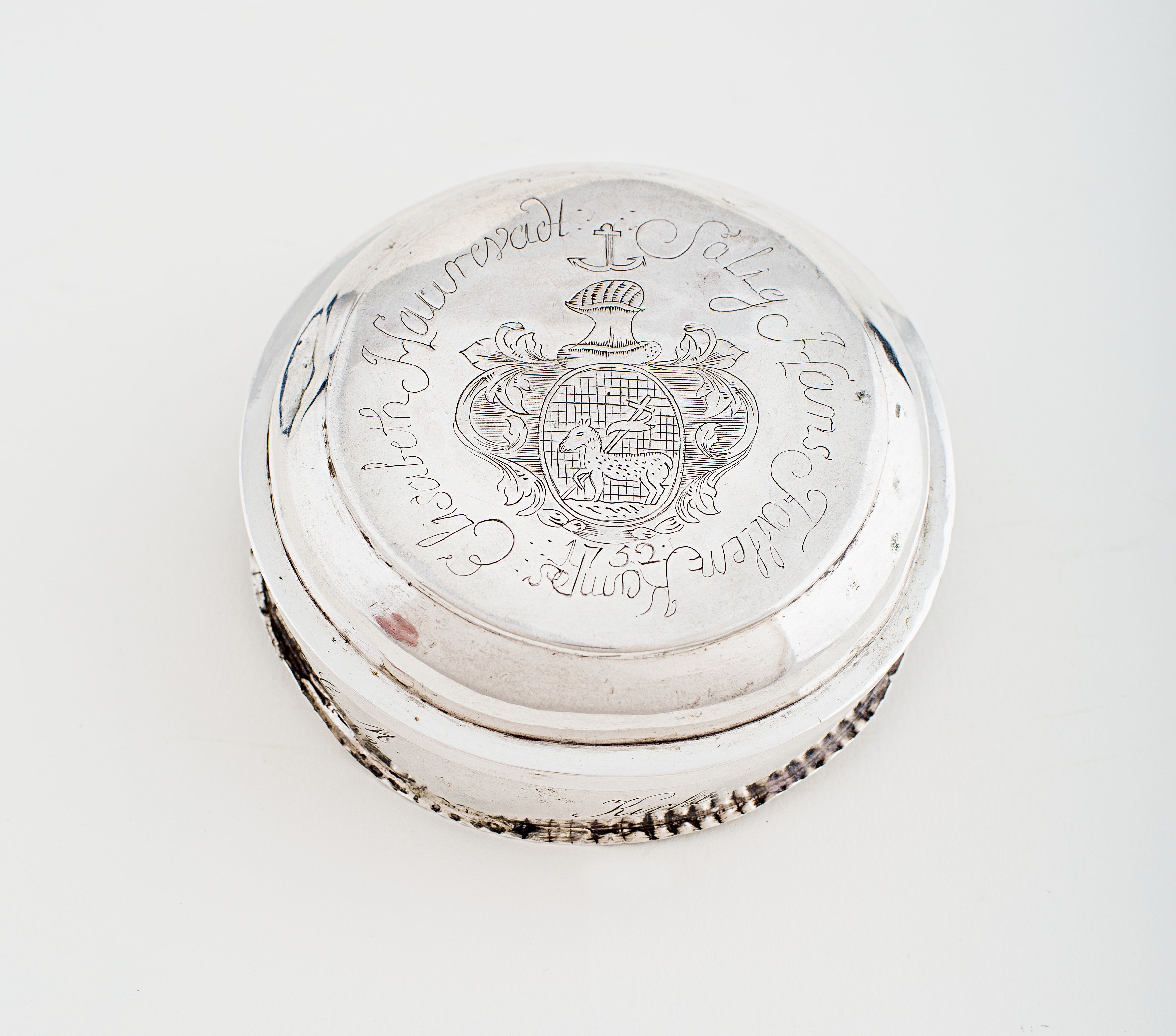 Udført af Fridrich Wissing, Odense, og skænket af Elisabeth Haurevadt til minde om ægtefællen Hans Fallenkamp.