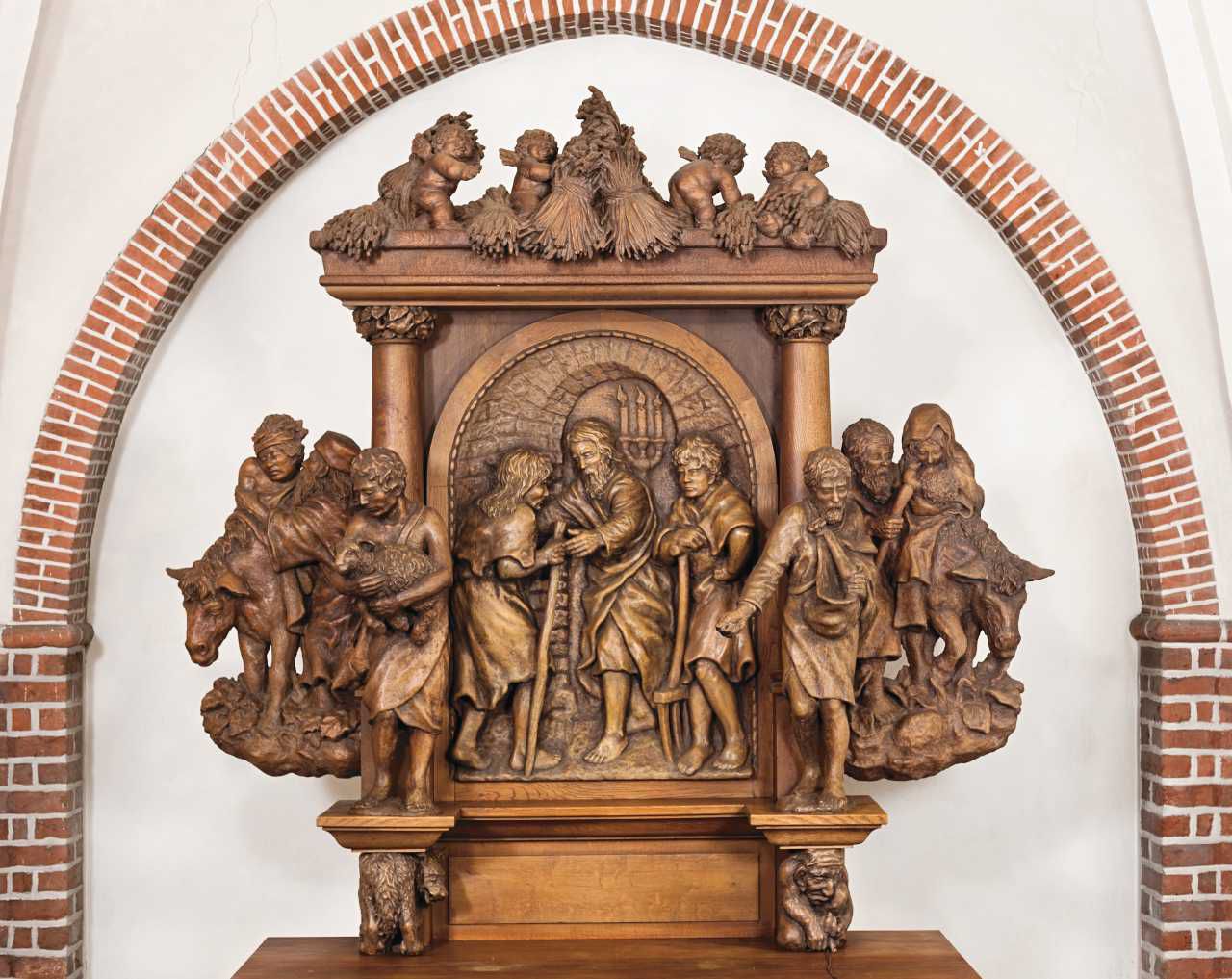 Danmarks Kirker, Vejle Amt, Hæfte 15, fig. 14 Altertavle udført af Emil Hansen fra Ryslinge i 1942.