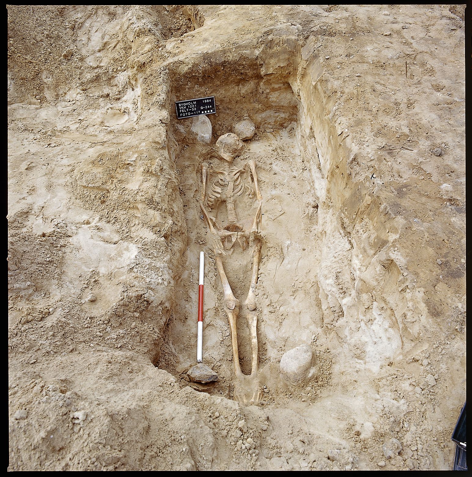 Danmarks Kirker, Vejle Amt, Hæfte 16, fig. 5 Stengrav med symmetrisk anbragte kampesten ved hoved og fødder.