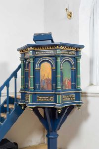 Grejs kirke - Prædikestol, 1615, stærkt fornyet i 1882