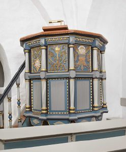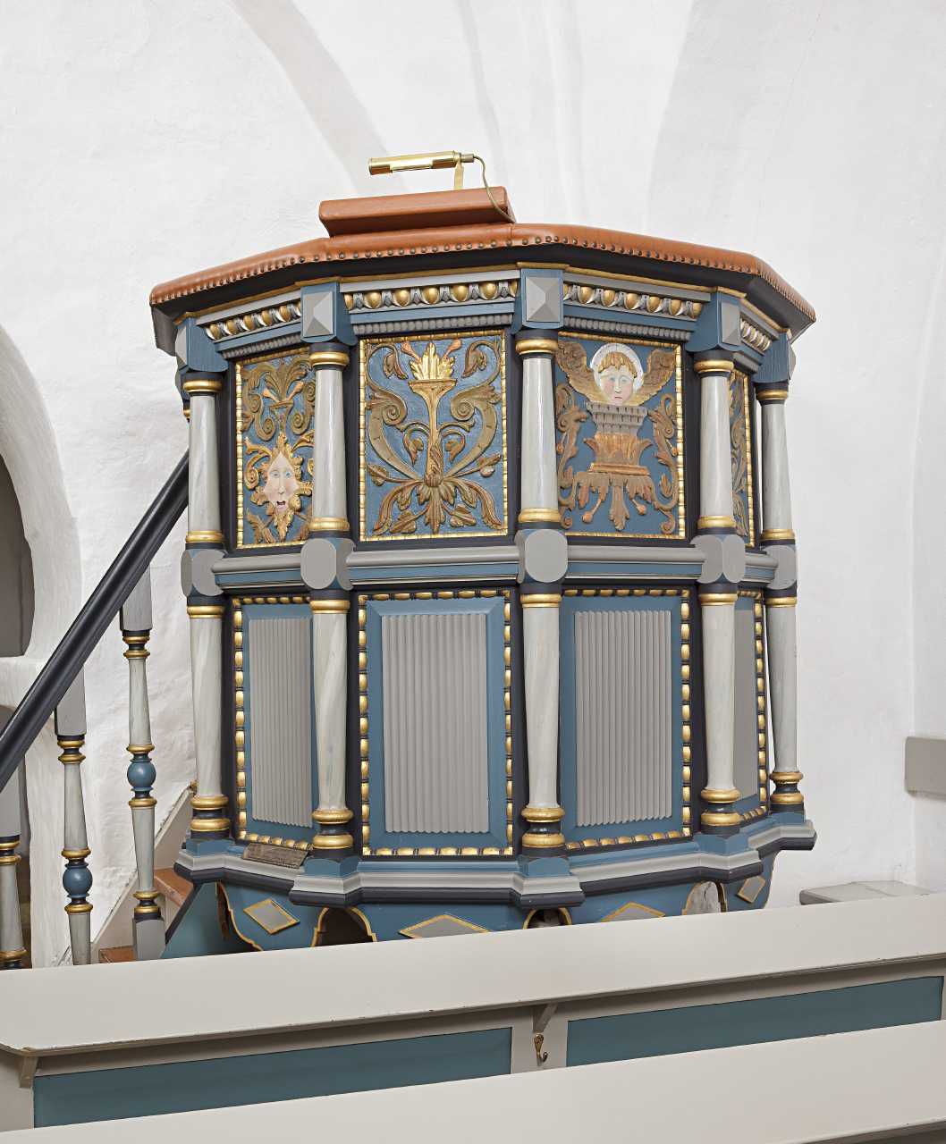 Store Dalby kirke - Prædikestol, o. 1580, stærkt fornyet i 1930
