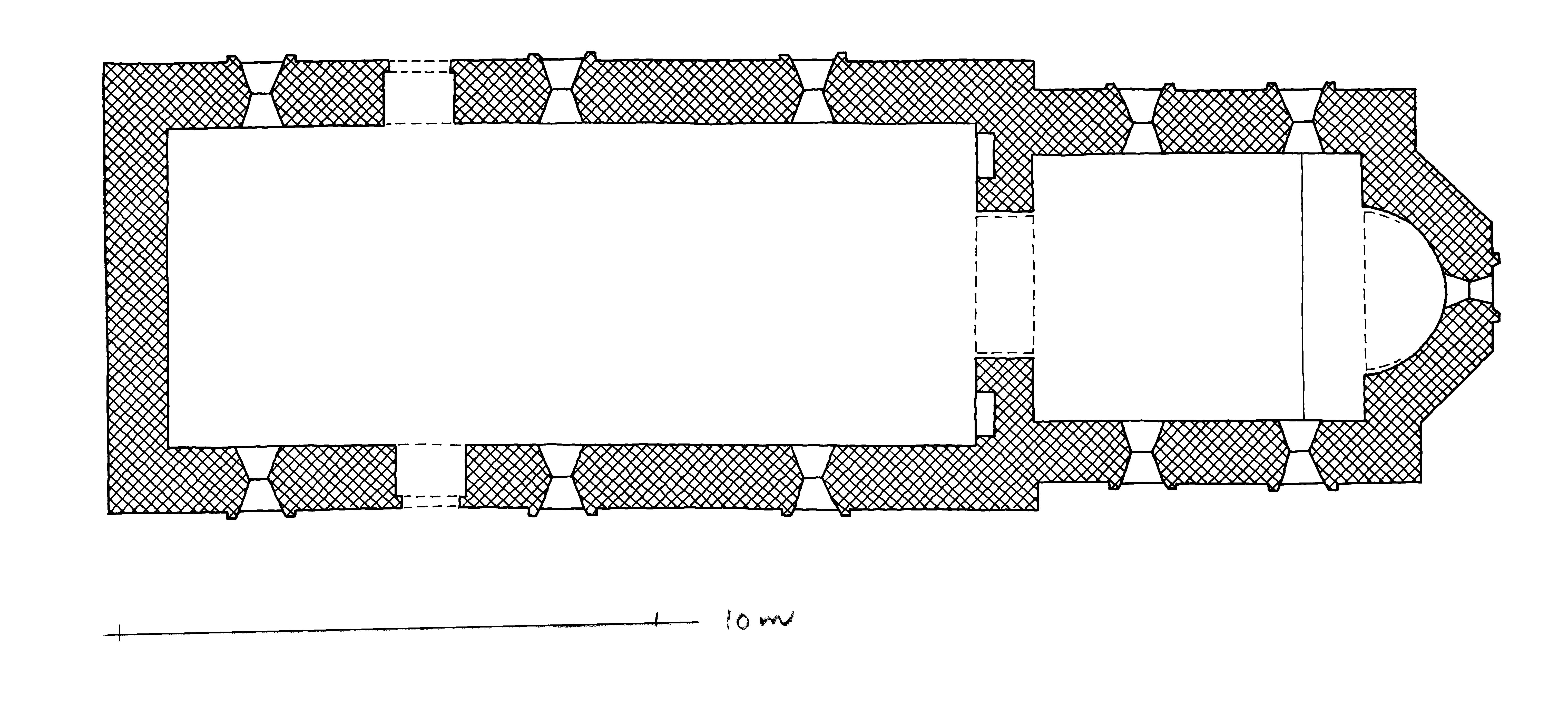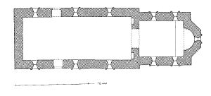Ølsted kirke - Grundplan af den romanske kirke, 1:300