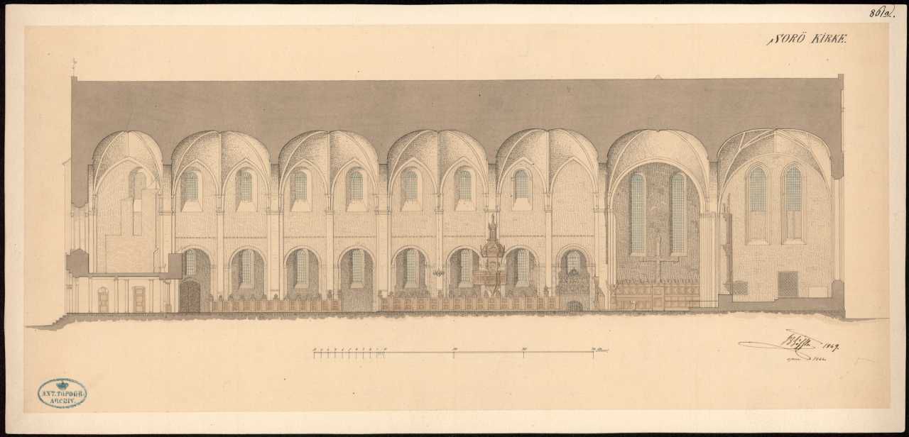 Sorø amt. Pen/tusch/akvarel. 20 x 42 cm.