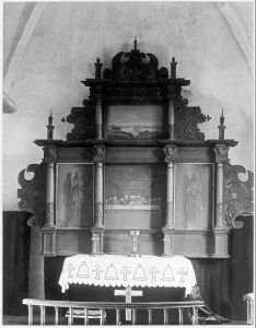 Danmarks Kirker, Ringkøbing Amt, Hæfte 14-15, fig. 48 Altertavle fra 1606 med malerier fra 1845 opstillet i den nedrevne †kirke.