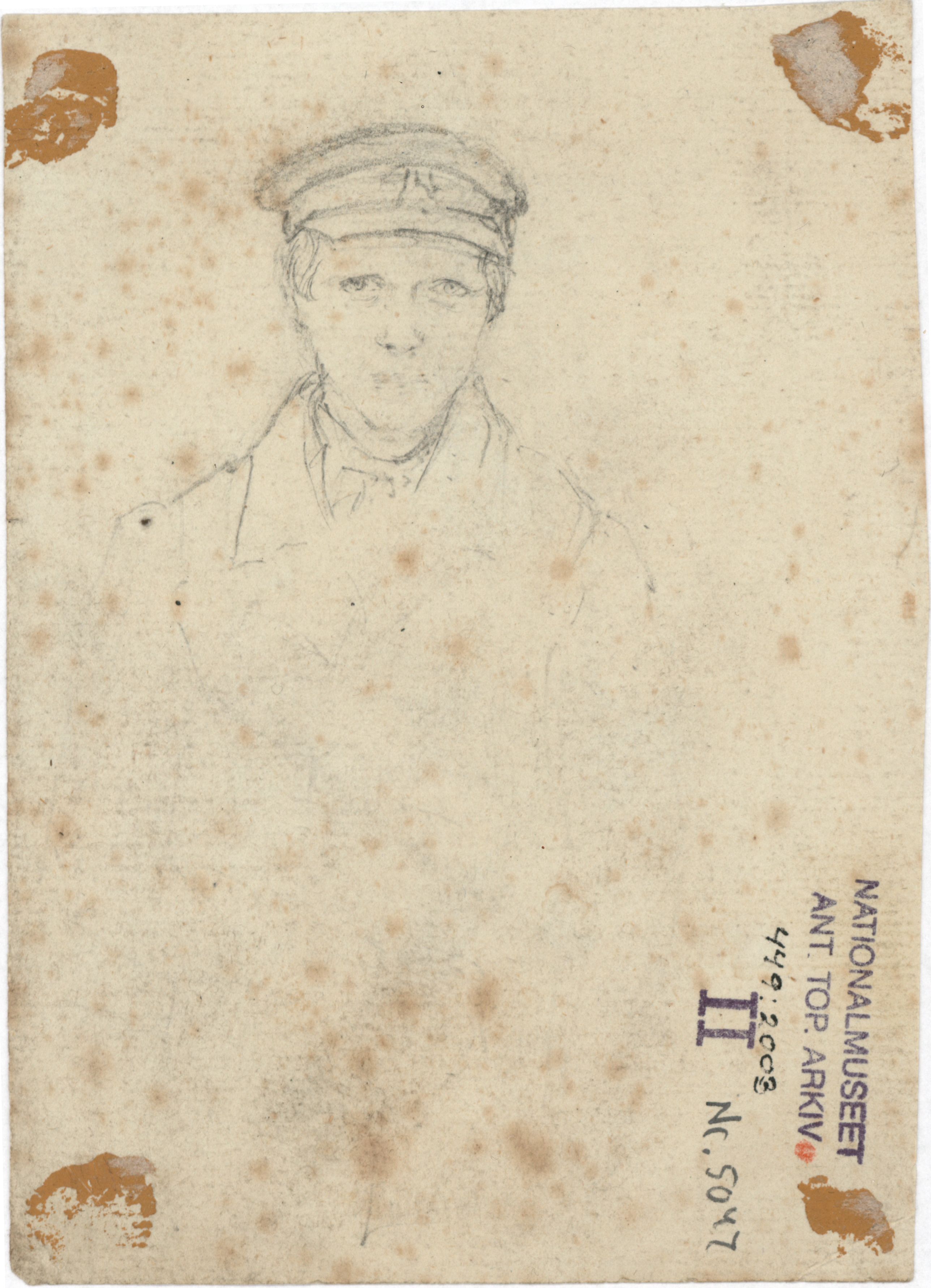 Tegning af J. F. Richardt. Blyant. 15 x 10,5 cm. Tegningens bagside. Forside se: dmr_a1_04565.