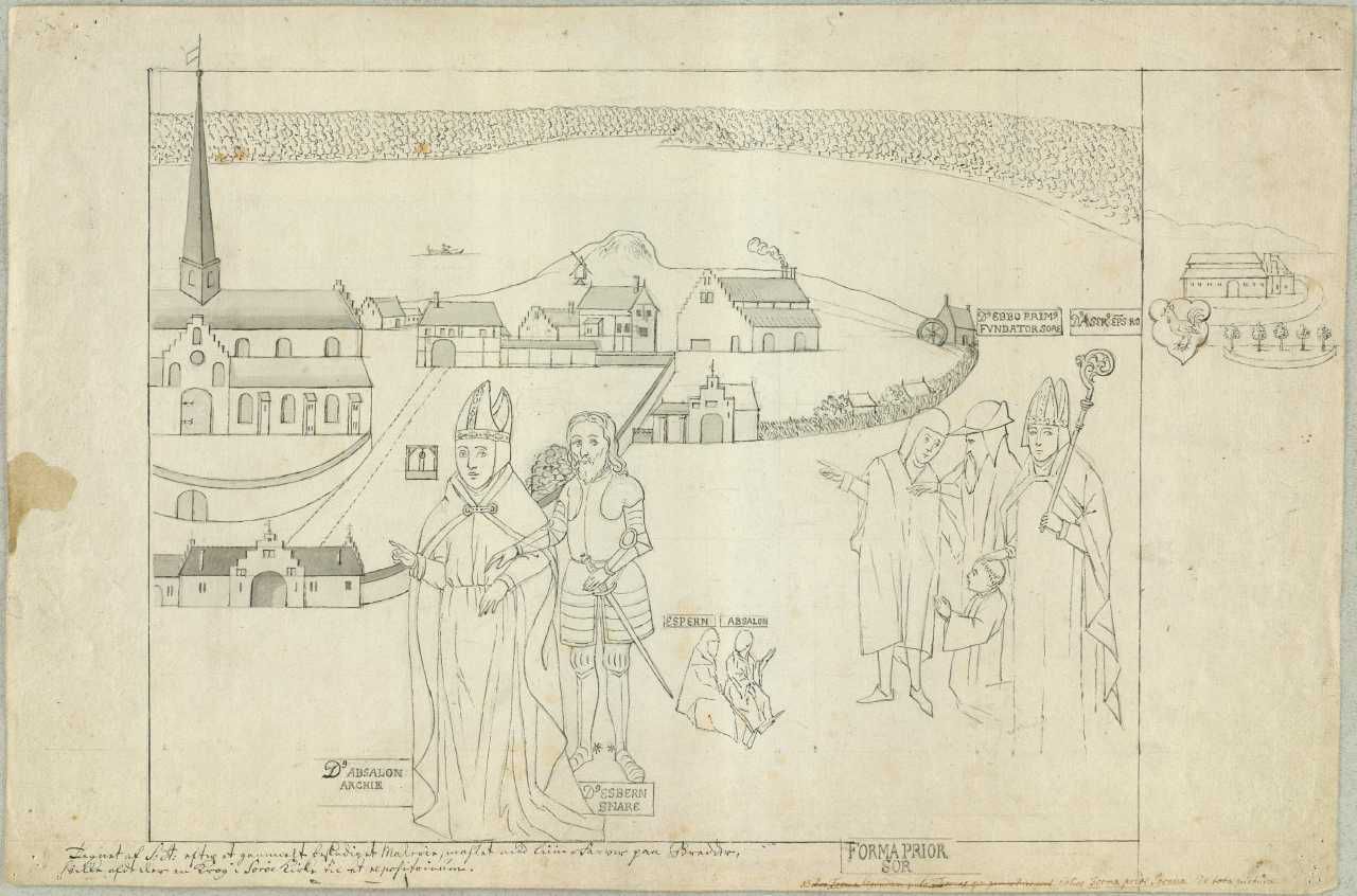 123. Sorø kirke og kloster. Prospekt efter †maleri o. 1570.