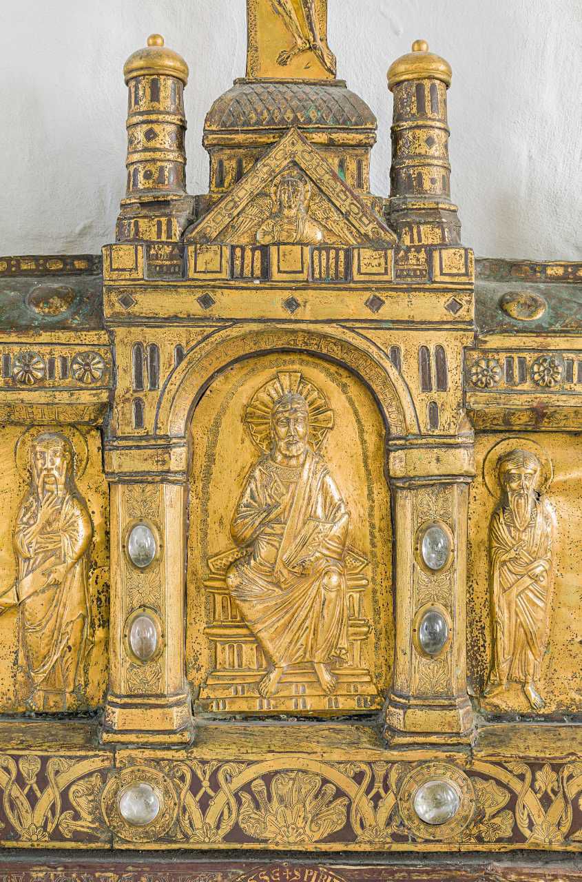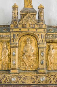 Udsnit af predella på det gyldne alters retabel. Litteratur: Danmarks Kirker, Ringkøbing Amt, hæfte 27-28, 2018, s. 2817.