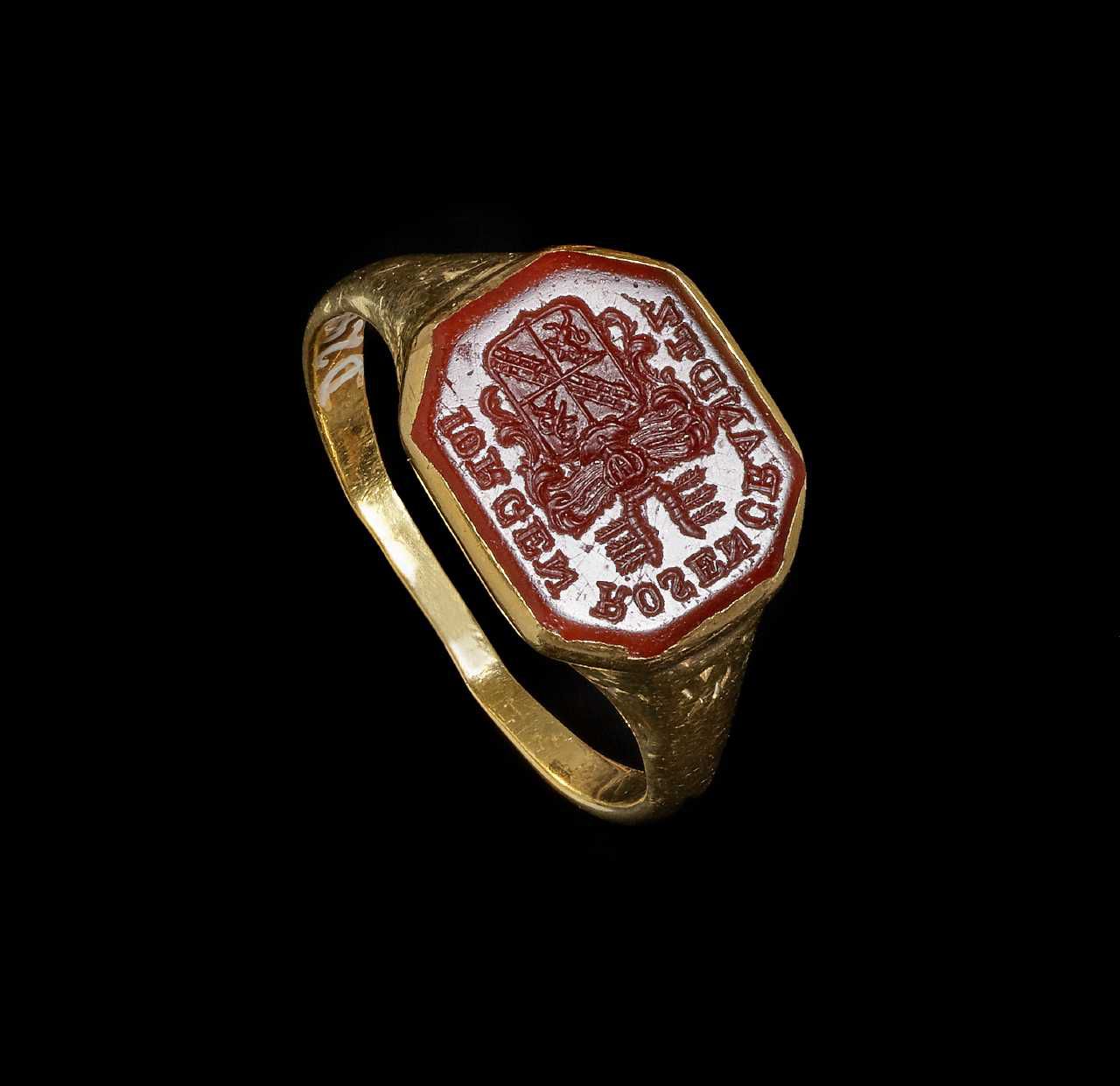 1600-1700. Signetringen har formodentlig tilhøt Jørgen Rosenkrantz (1607-75), der var hofmester på Sorø Akademi. Ringen blev fundet i Frederiksholms Kanal i 1800-tallet og afleveret til politikeren Iver Holger Rosenkrantz (1813-73), der viste ringen til Frederik 7. Kongen skulle have sagt "Når guldringen er fundet i min kanal, så er den egentlig min ring, men du må godt beholde den." Derefter gik ringen i arv i slægten Rosenkrantz og findes nu i Nationalmuseets samling.