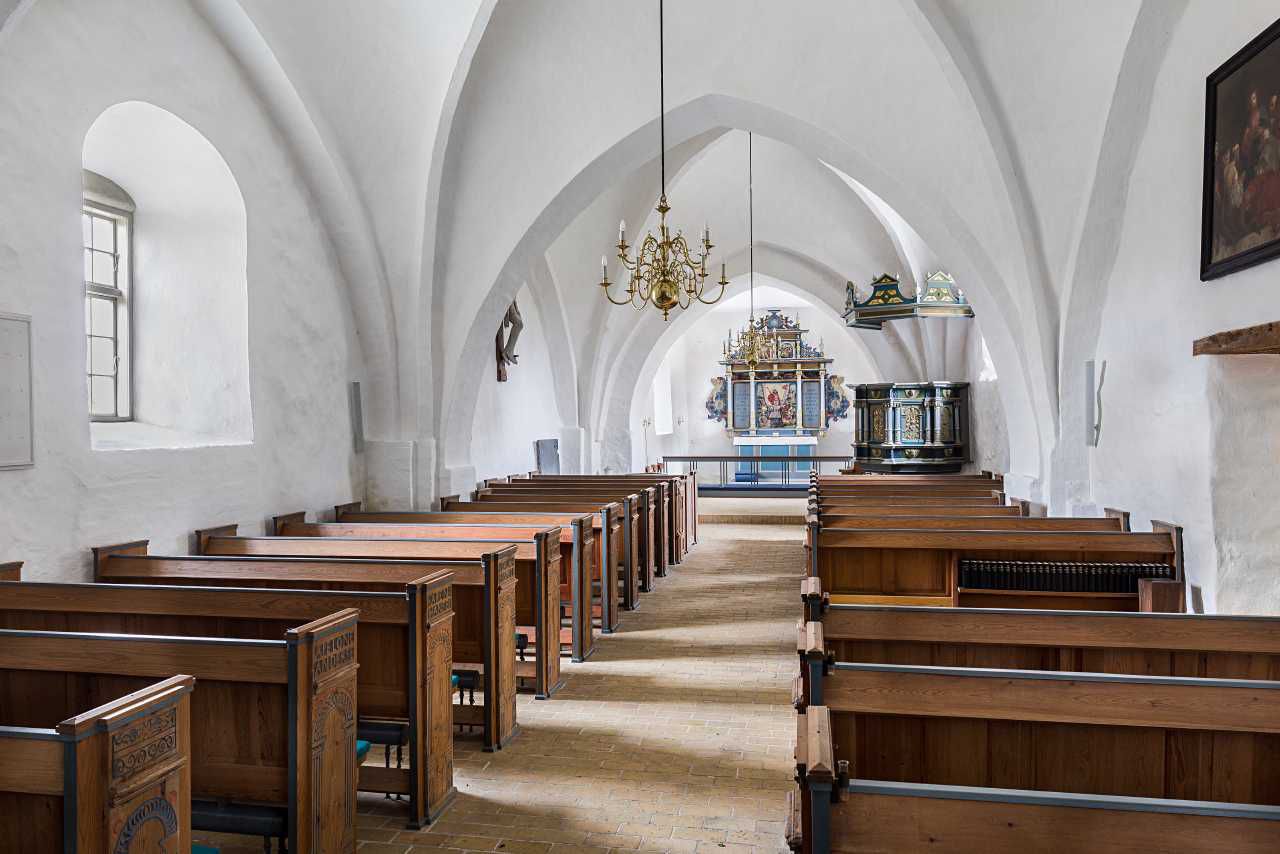 Kirkens indre set mod øst, Norup Kirke