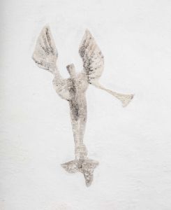 Basunblæsende engel, o. 1760. Østrup Kirke