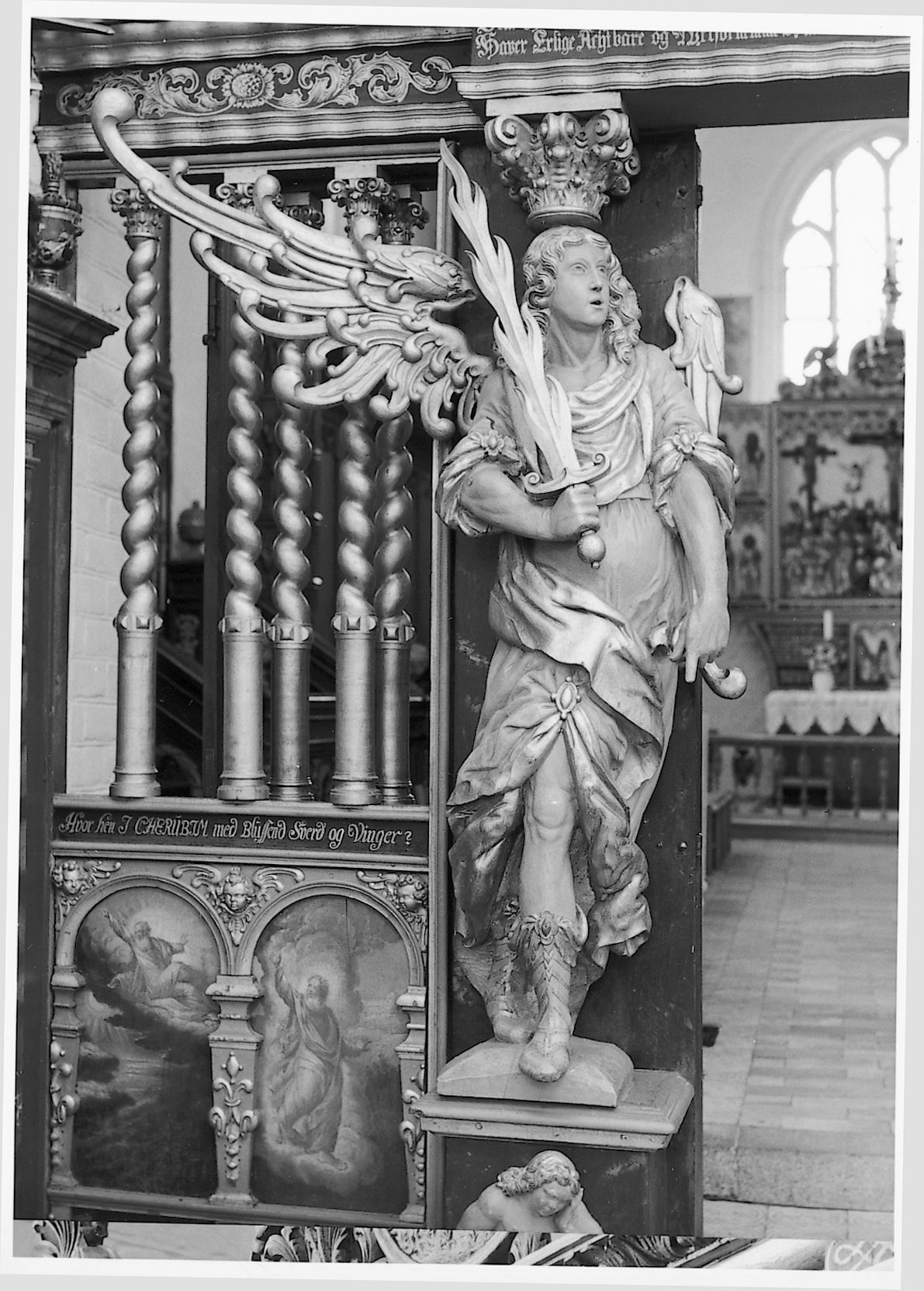 Kerub med flammesværd. Detalje af korgitteret. DK Aarhus 5802, fig. 177.