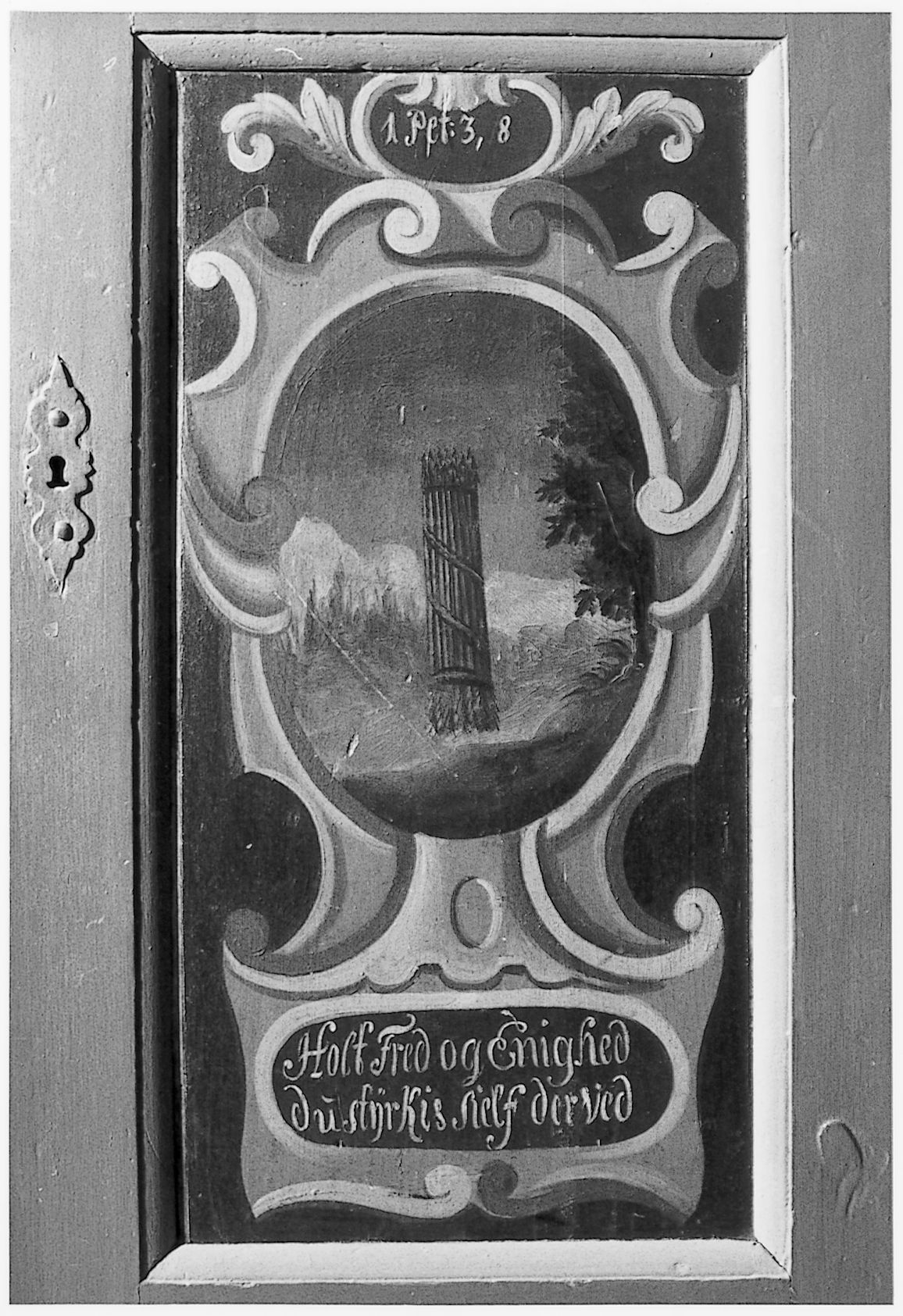 Emblemmaleri på stolestaddør. DK Aarhus 5818-5823, fig.198-230. DK Aarhus 58-60.