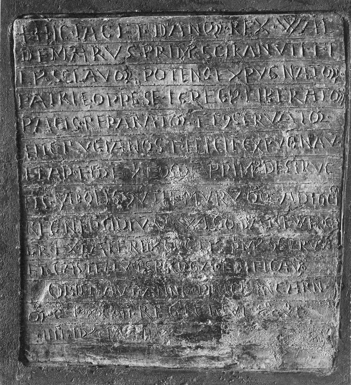 Valdemar den Stores blyplade. På blypladen findes to indskrifter, som beretter om Valdemar den Stores bedrifter. Pladen blev fundet i Valdemar den Stores grav i Skt. Bendts kirke i Ringsted i 1855
