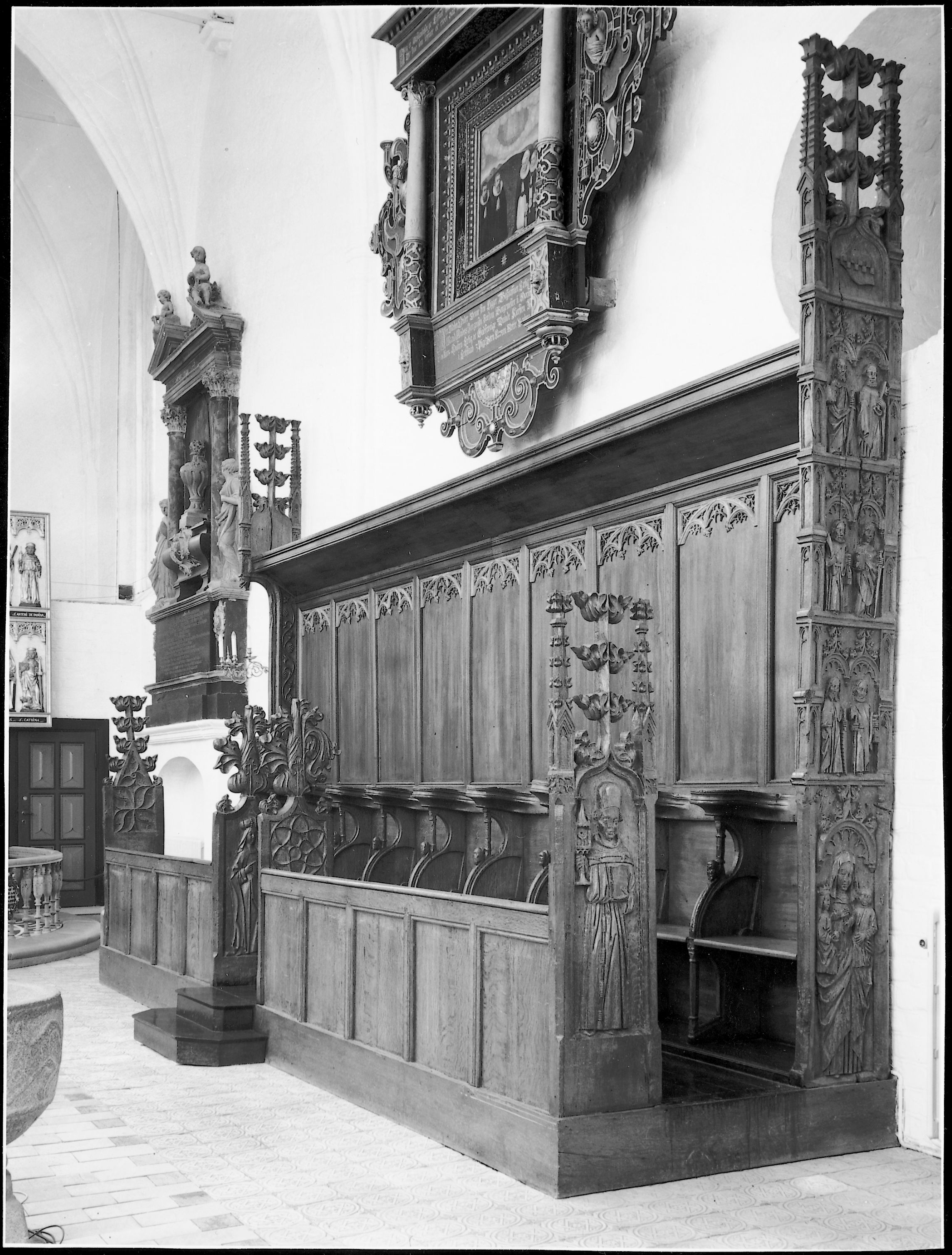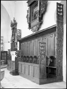 De senmiddelalderlige korstoles sydrække, set fra vest. DK Aarhus 5847, fig. 313.