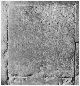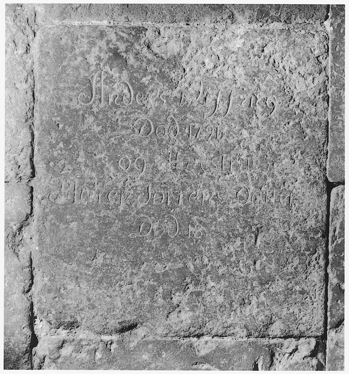 Gravsten, o. 1791, over Anders Wissing(†1791) og hustru Maren Sørensdatter (†18XX). DK Aarhus 5918, fig. 406.