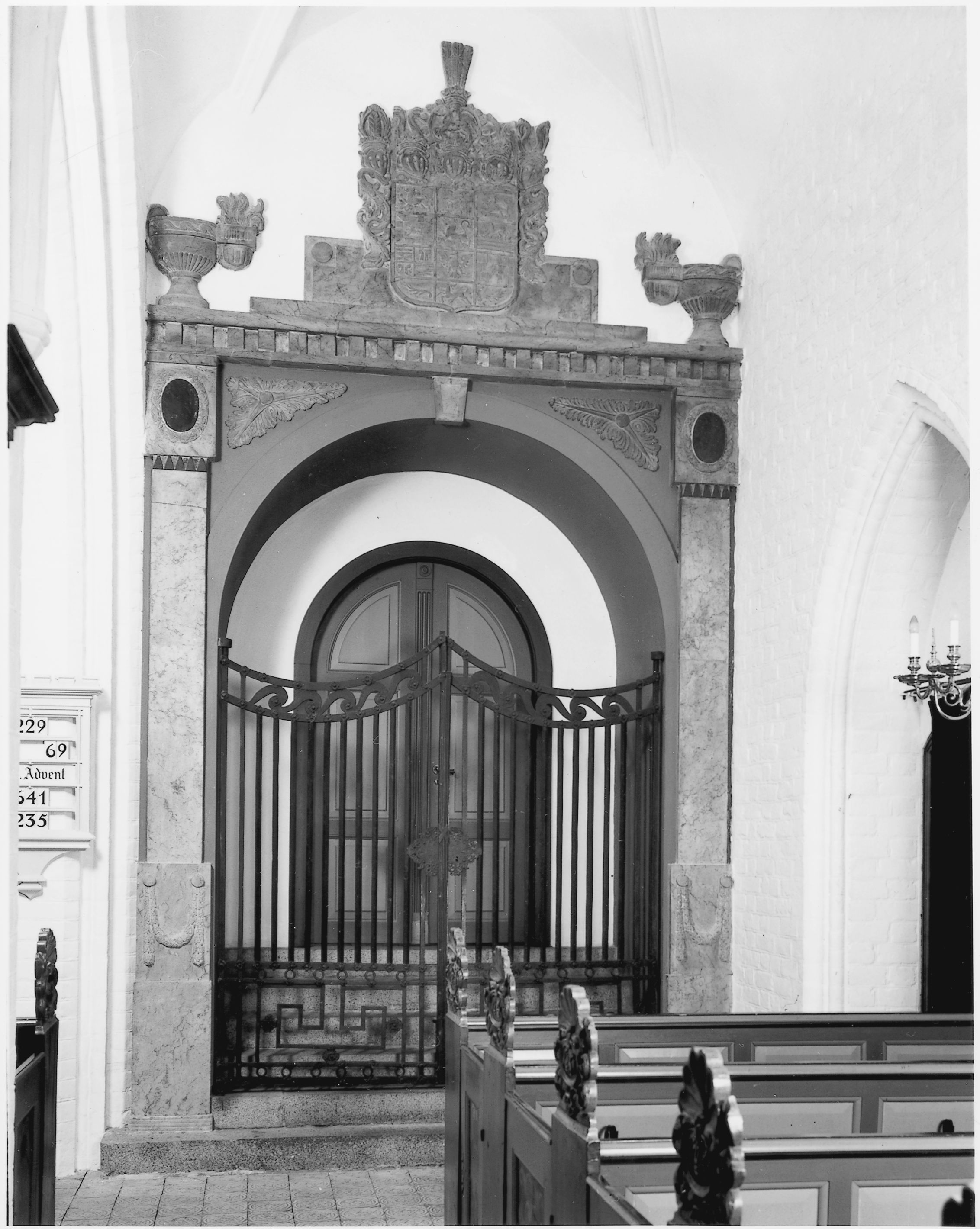 Indgangsparti til Det russiske Kapel, udført af billedhugger Jens Hiernøe 1783. DK Aarhus 5942, fig. 432.