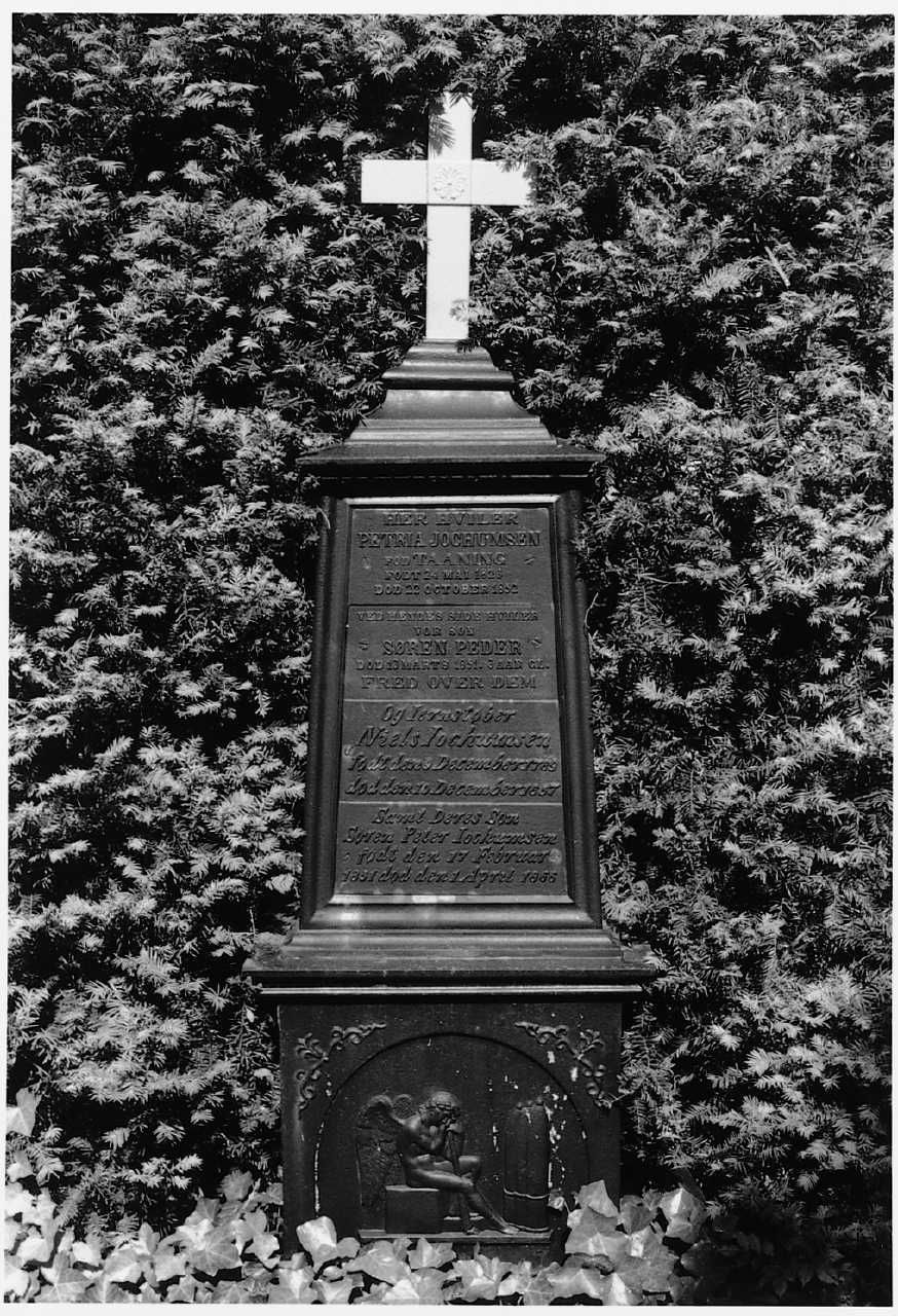 Kirkegårdsmonumenter, o. 1852, over Petria Jochumsen, f. Taaning (†1852), hendes mand, jernstøber Niels Jochumsen (†1857) og deres søn Søren Peter Jochumsen (†1866). DK Aarhus 6124, fig. 5.