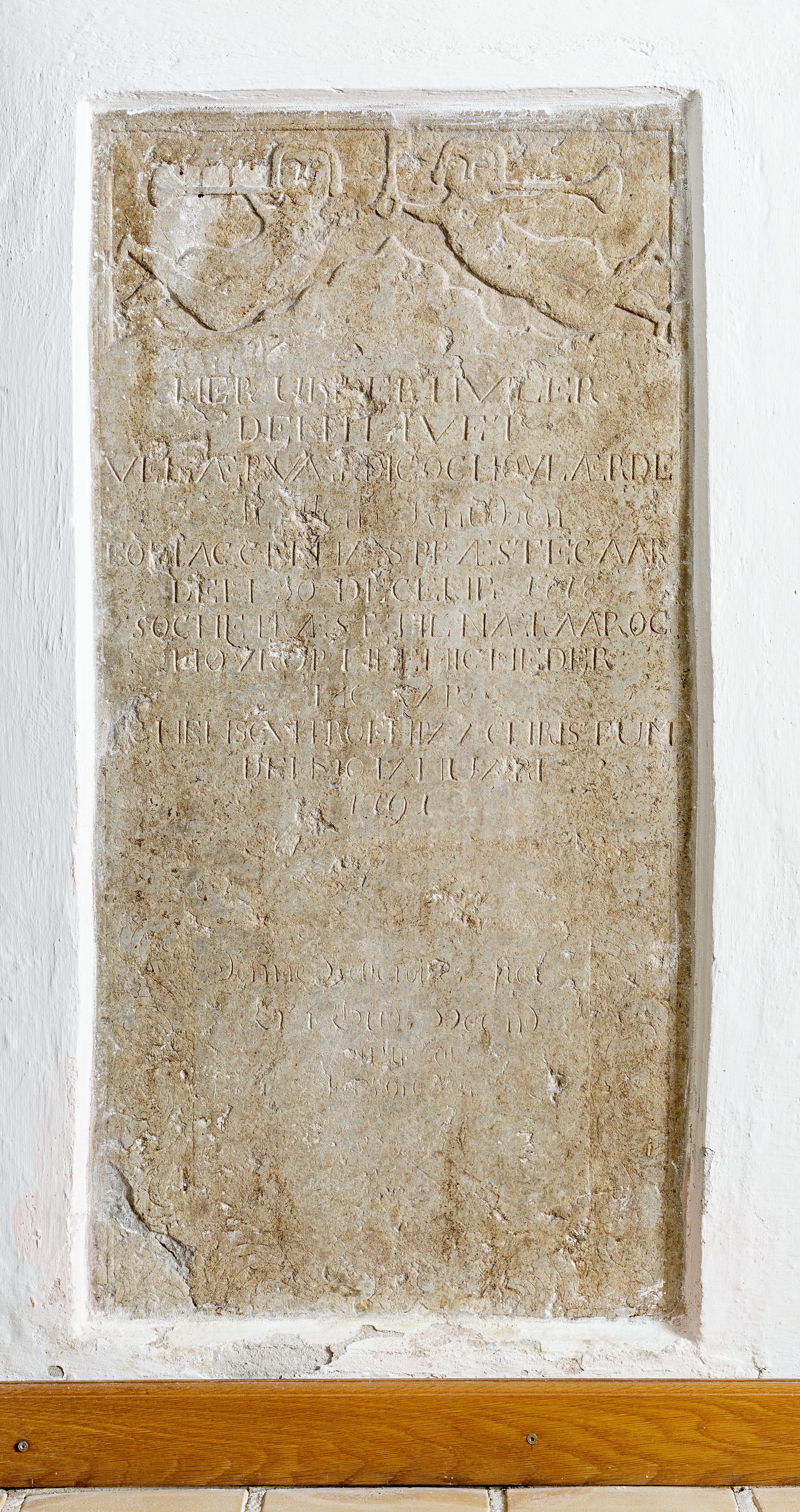 Gravsten, 1791, over sognepræst Hans Knudsen, Nørre Nærå Kirke.
