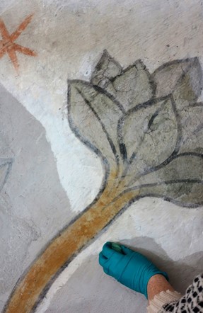 Under konservering 2019-20. Tørafrensning med Gomme pane