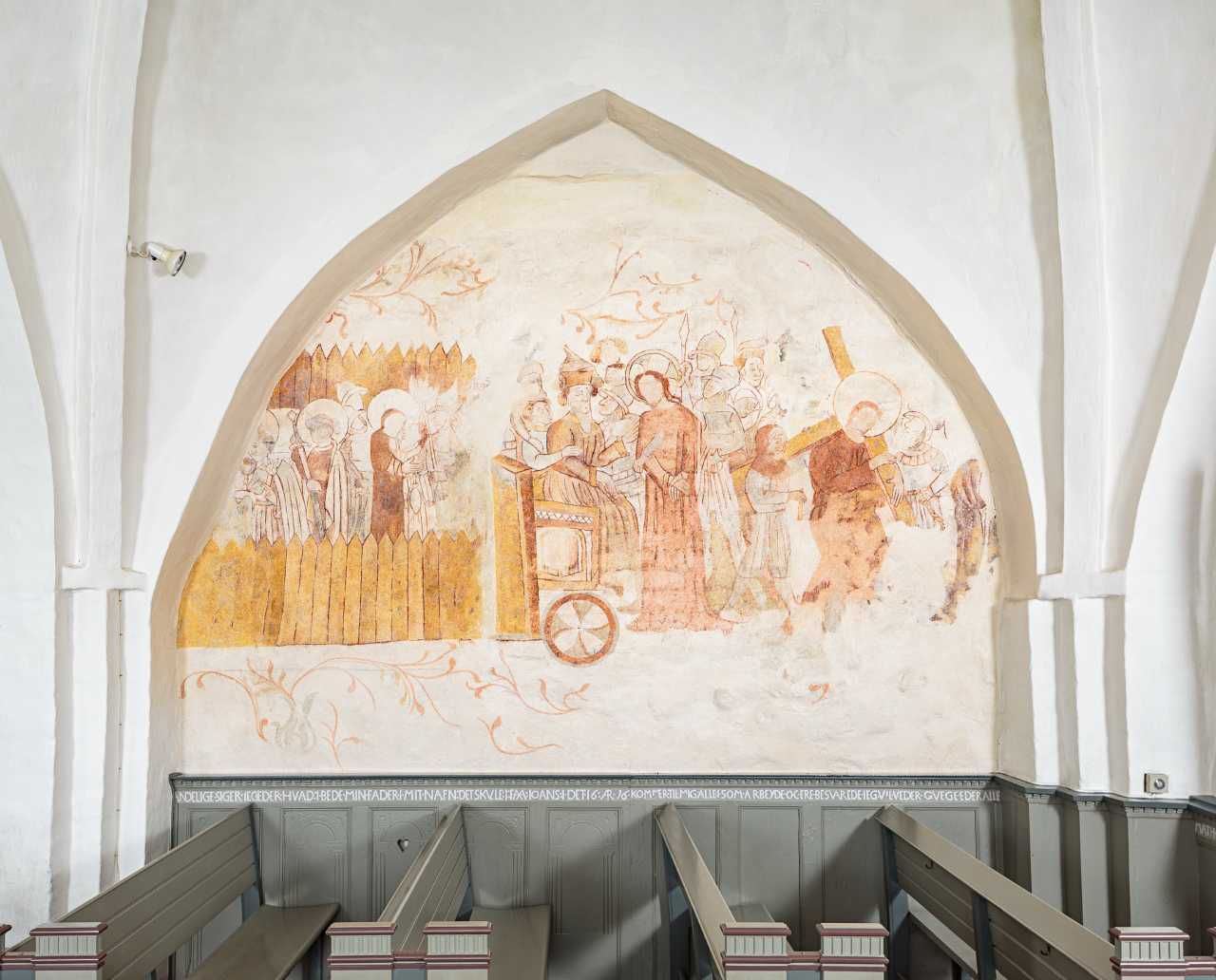 Kalkmalerier på skibets nordvæg, o. 1475. Litteratur: Danmarks Kirker, Odense Amt, hæfte 47, 2019, s. 5346.