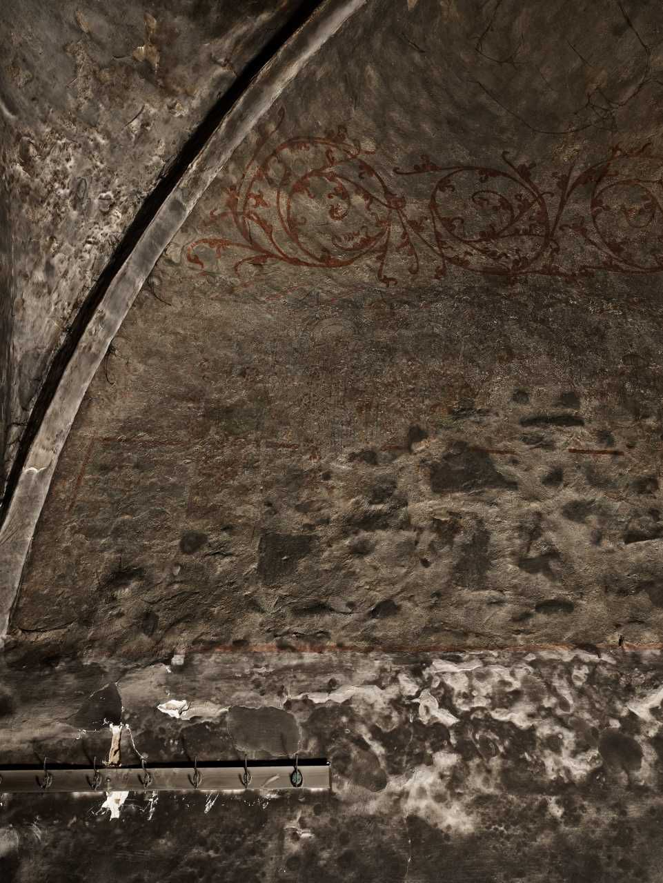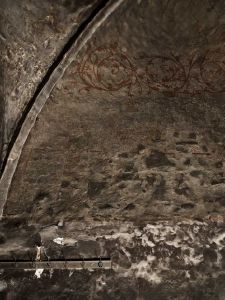 Nødager kirke, kalkmalerier i tårnrum, nordkappe mod vest, efter brand