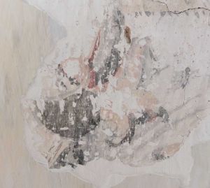 Registrering af kalkmalerifragment. Voldum Kirke
