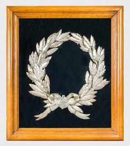 Mindekrans, 1896, over lærer Iver Johan Ryberg Wiibroe 1833-96, skænket af sognets beboere.