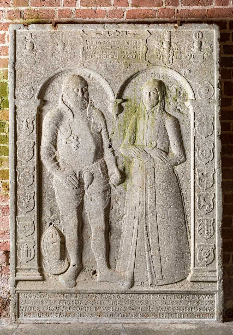 Gravsten nr. 4, o. 1571, over Jørgen Svave og hustru Catharina von Buchwald. Litteratur: Danmarks Kirker, Odense Amt, hft. 50-51, s. 5683, fig. 77.