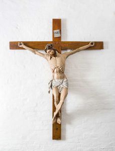 Korbuekrucifiks fra slutningen af 1400-tallet. Litteratur: Danmarks Kirker, Odense Amt, hft. 52-54, s. 6049, fig. 68.