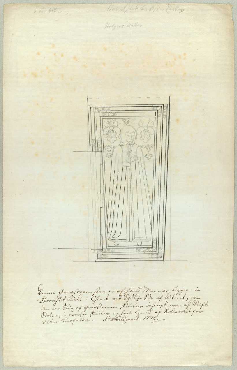 Denne Gravsteen, o.1564, som er af hviid Marmor over Sofie Rosenkrantz, (†1558), enke efter Axel Brahe og søster til Otte Rosenkrantz, ligger i Hornslet Kirke i Choret ved Sydlige Side af Alteret, paa den ene Side af Gravsteenen skiules inscriptionen af Skriftestolen, i øverste skiules en heel Linned af Rækværket for Alter Knæfaldet.
