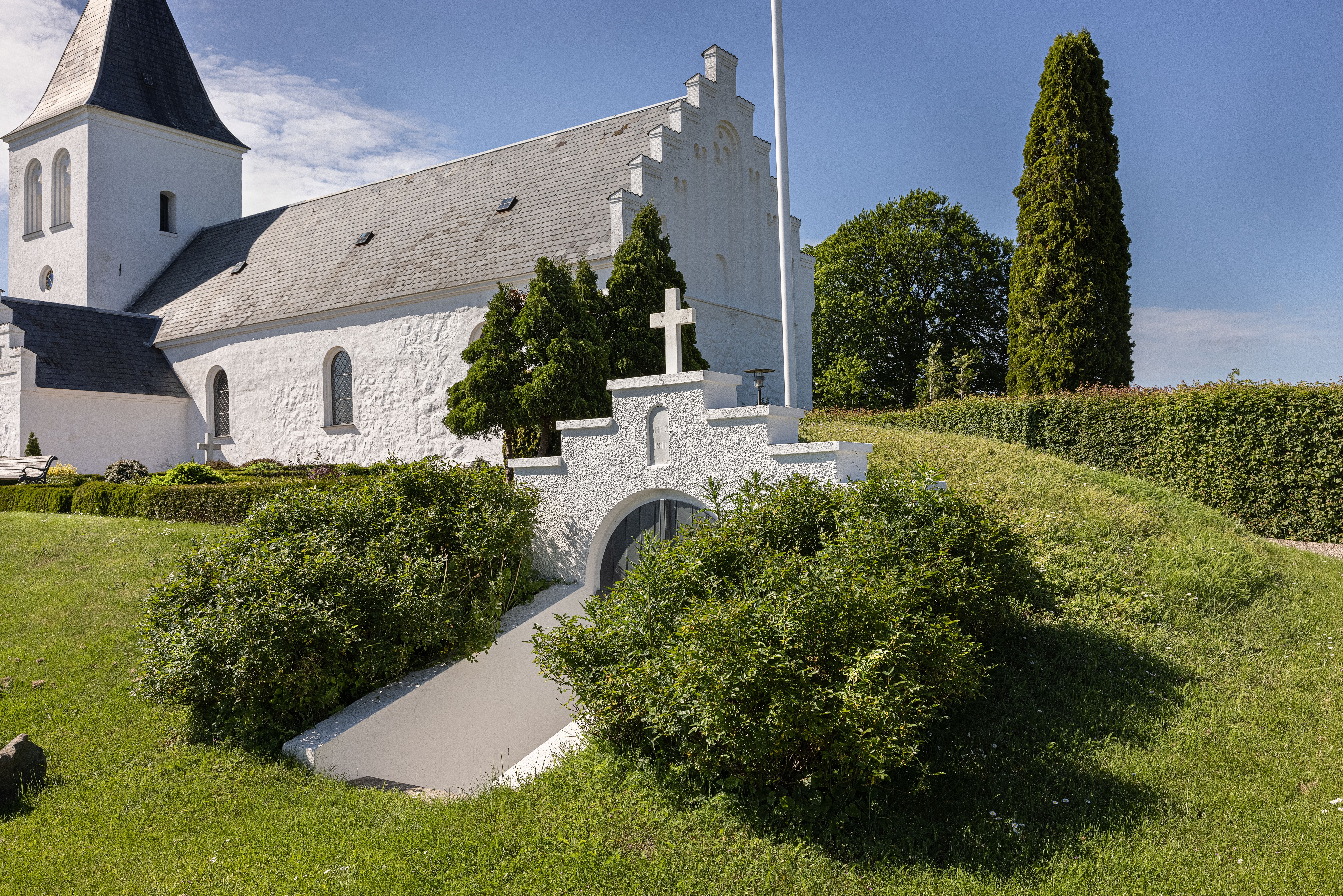 Kirken set fra sydøst med »Hanseoddes Kapel« fra 1911 i forgrunden. Litteratur: Danmarks Kirker, Svendborg Amt, hæfte 27-28, 2021, s. 3012, fig. 105.