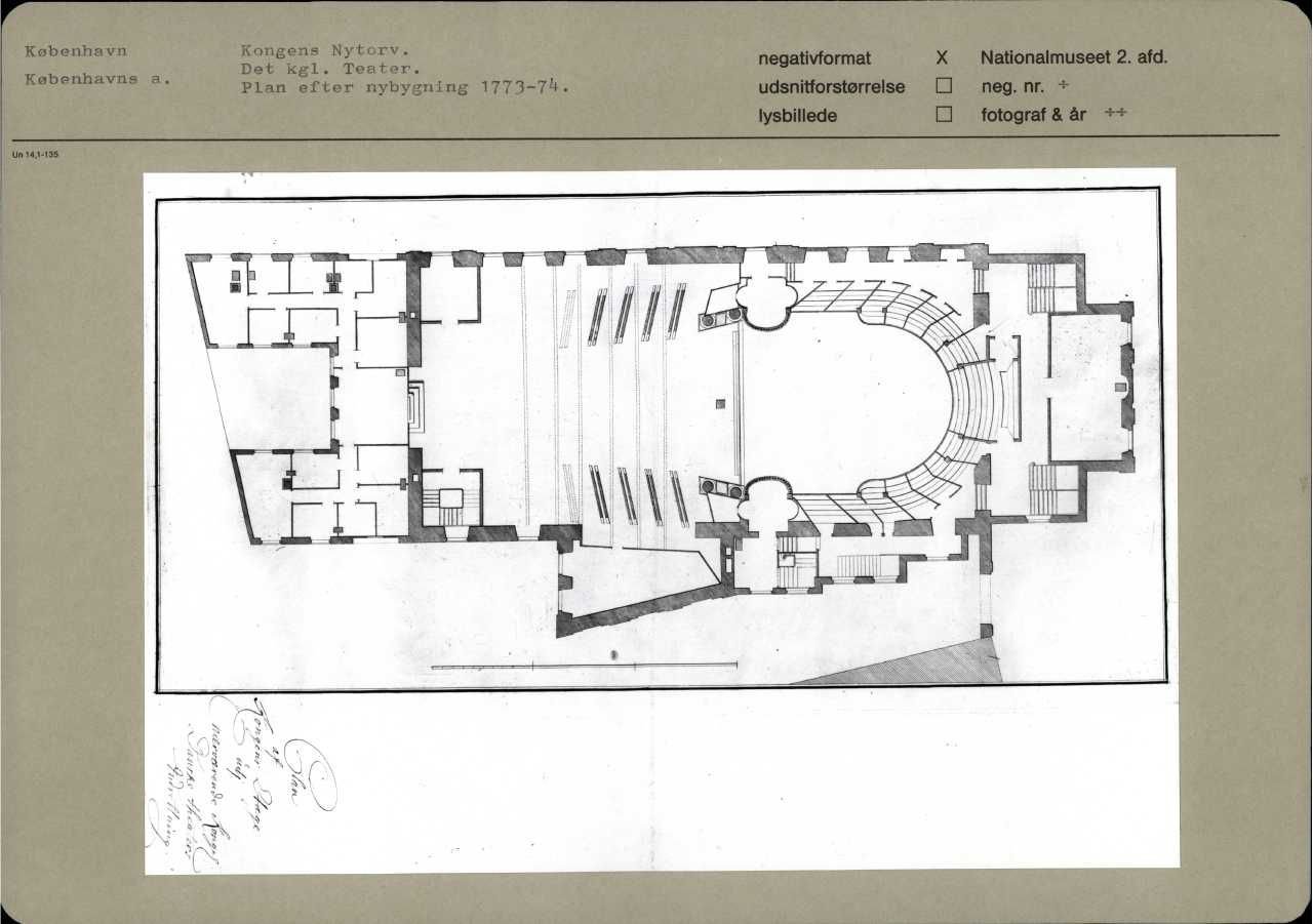 Kongens Nytorv. Det kgl. Teater. Plan efter nybygning 1773-74.