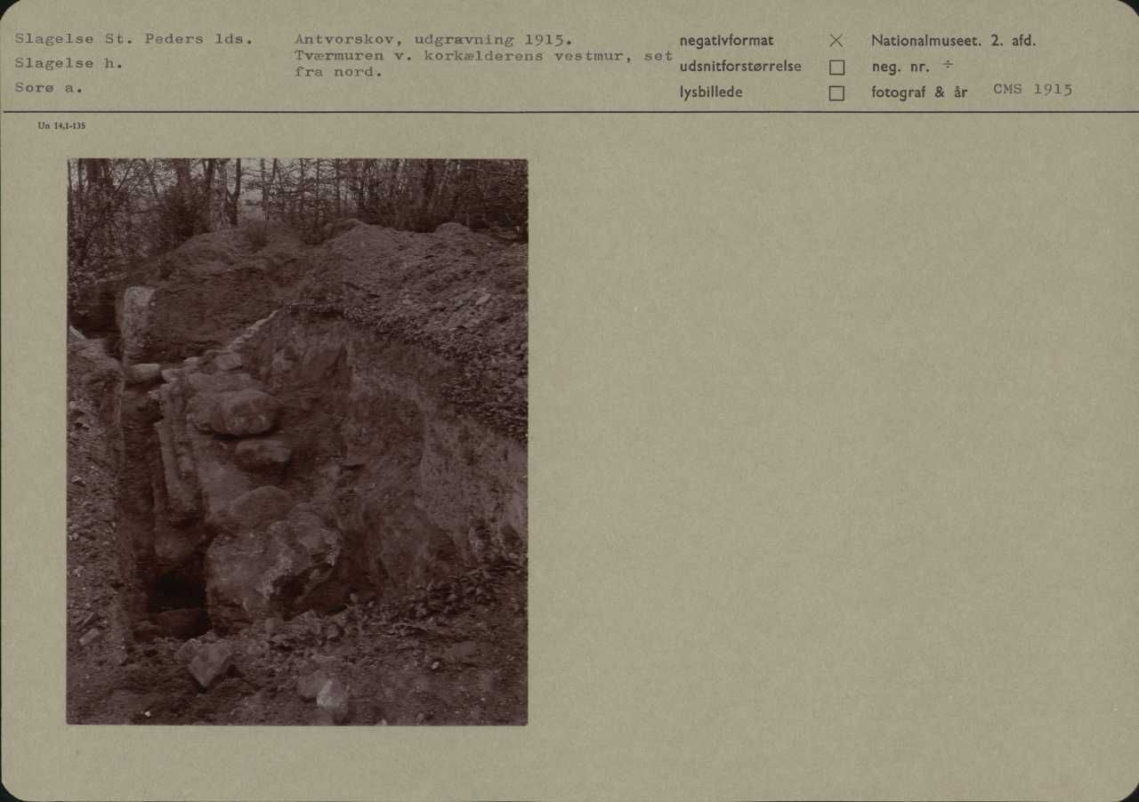 Antvorskov, udgravning 1915. Tværmuren v. korkækderens vestmur, set fra nord.