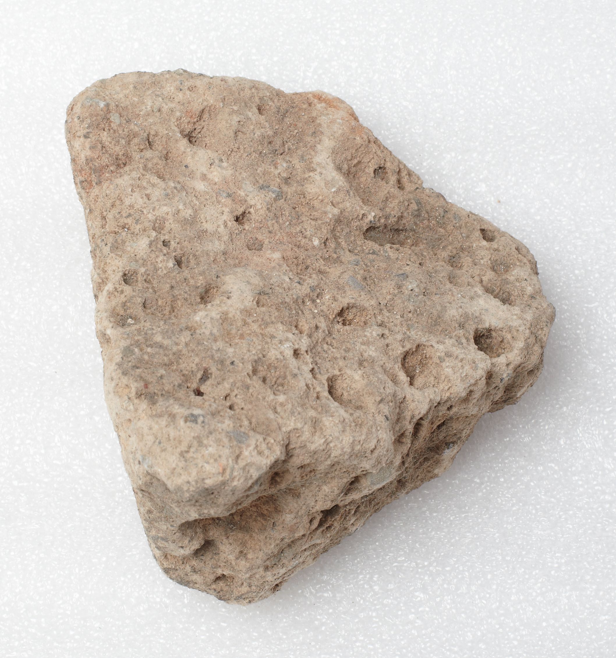 "Fragment af frådsten med en glathugget langside. (8,5 x 15,5 x 14,1 cm)"