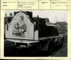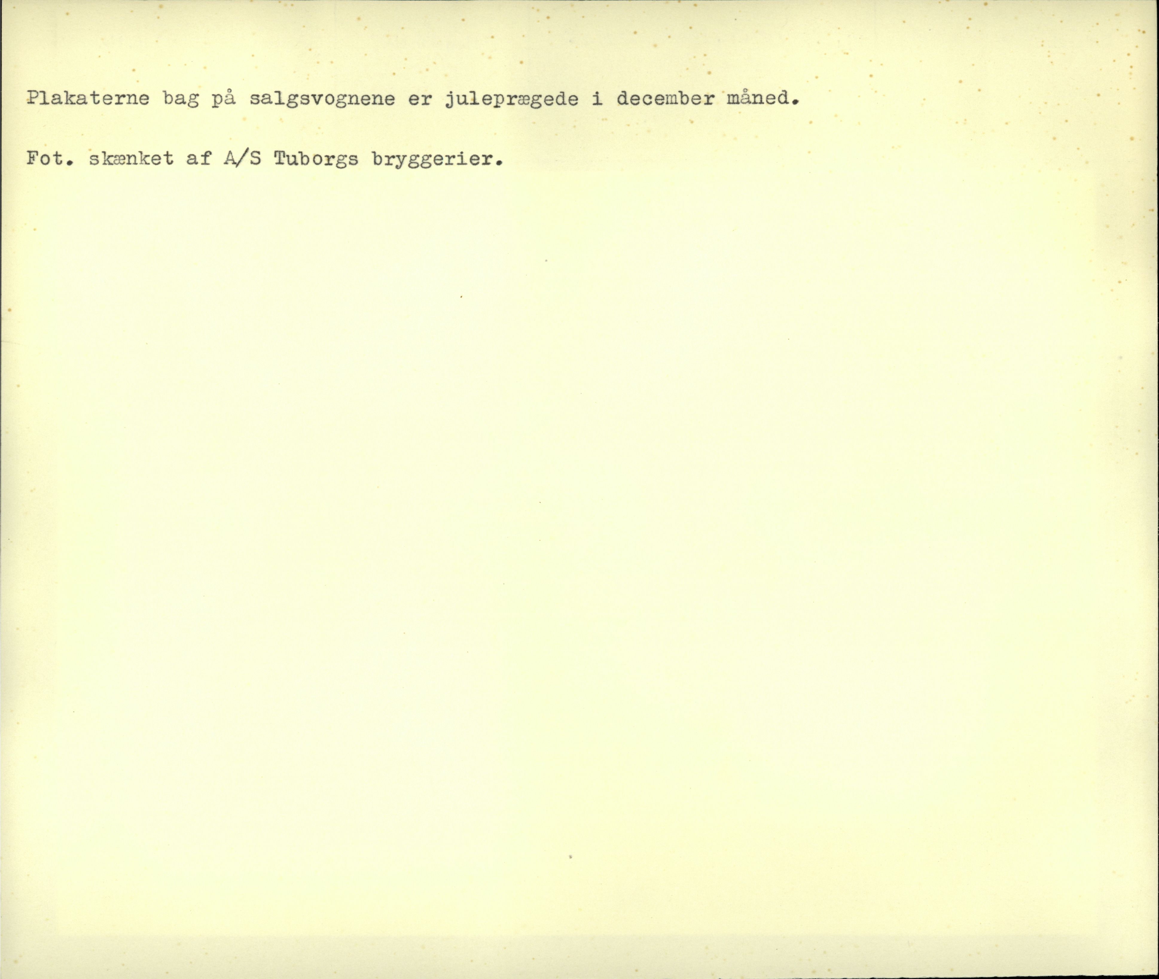 Plakaterne bag på salgsvognene er juleprægede i december måned. Fot. skænket af A/S Tuborgs bryggerier.