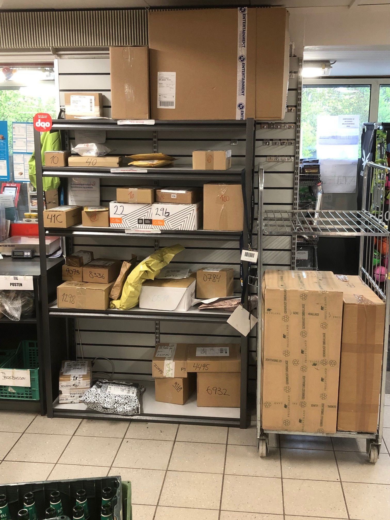 Brugsen Helgenæs. Pakker til afhentning.