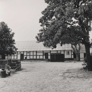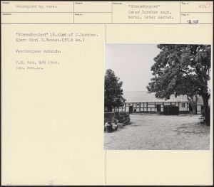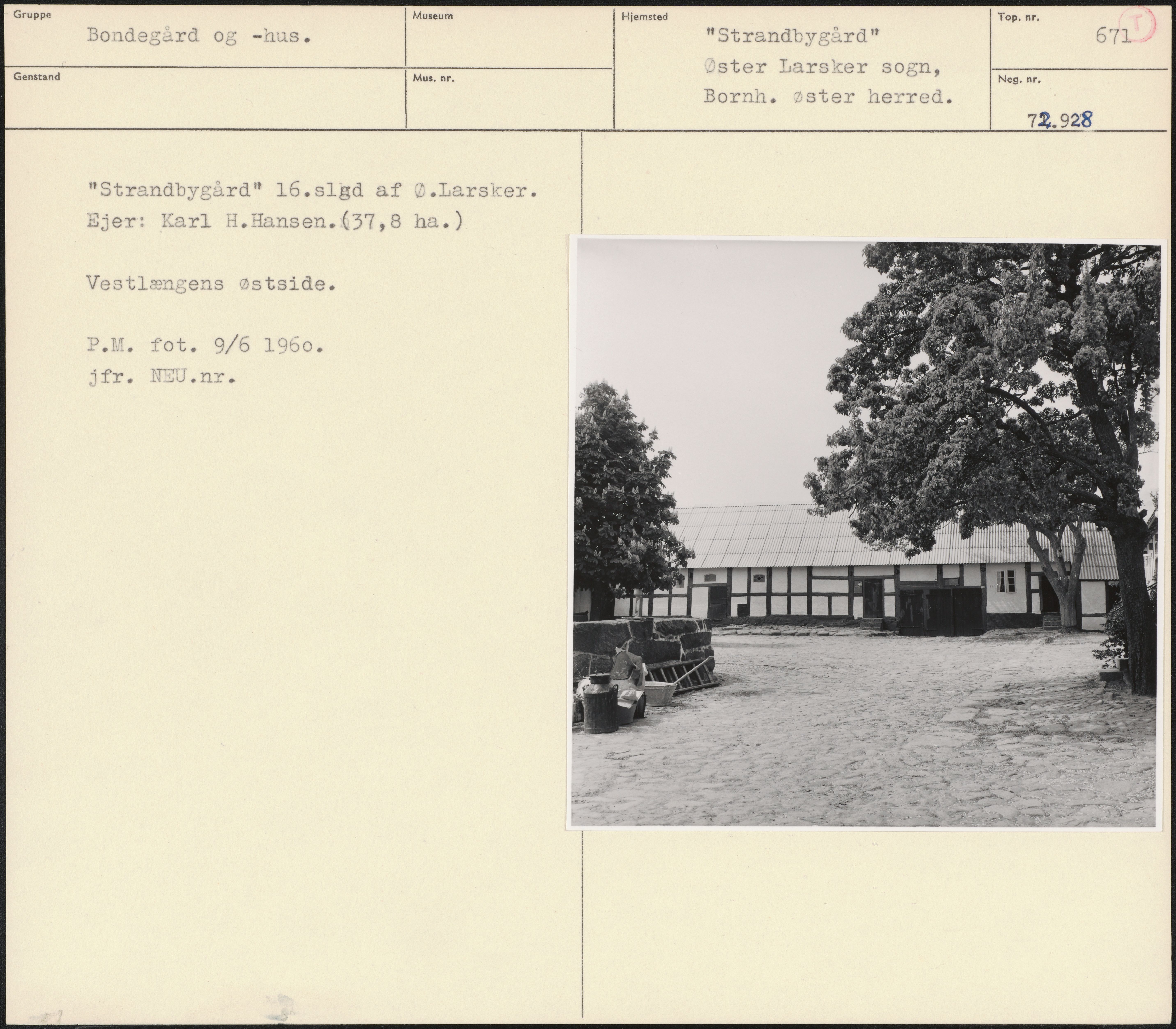 Maskingenkendt tekst fra arkivkort. Strandbygård" 16.slød af Ø.Larsker. Ejer: Karl H.Hansen.€37,8 ha) Vestlængens østside. P.M. fot. 9/6 1960. jfr. NYU.nr.