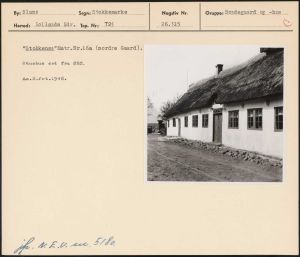Maskingenkendt tekst fra arkivkort. Stokkenæs"Matr.Nr.16a (nordre Gaard). Stuehus set fra ØSØ; Ax.S9.fot.1946.