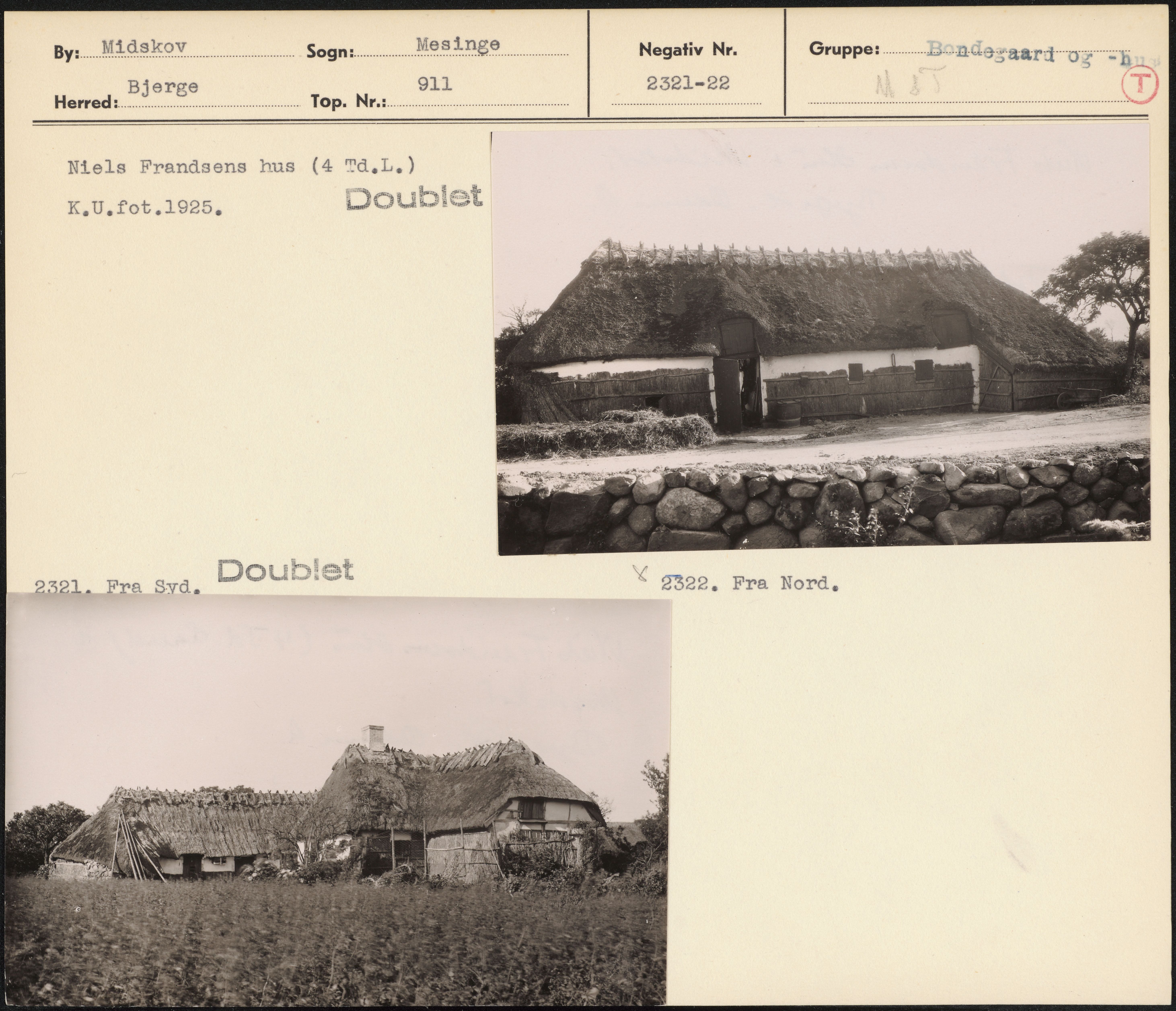 Maskingenkendt tekst fra arkivkort. Niels Frandsens hus (4 TA.L.) . øn i om Å . K.U.fot 1925. Doublat ; æn klo, 000 . P ar Ves 2321. Fra Svd. Doubist x 2322. Fra Nor4,