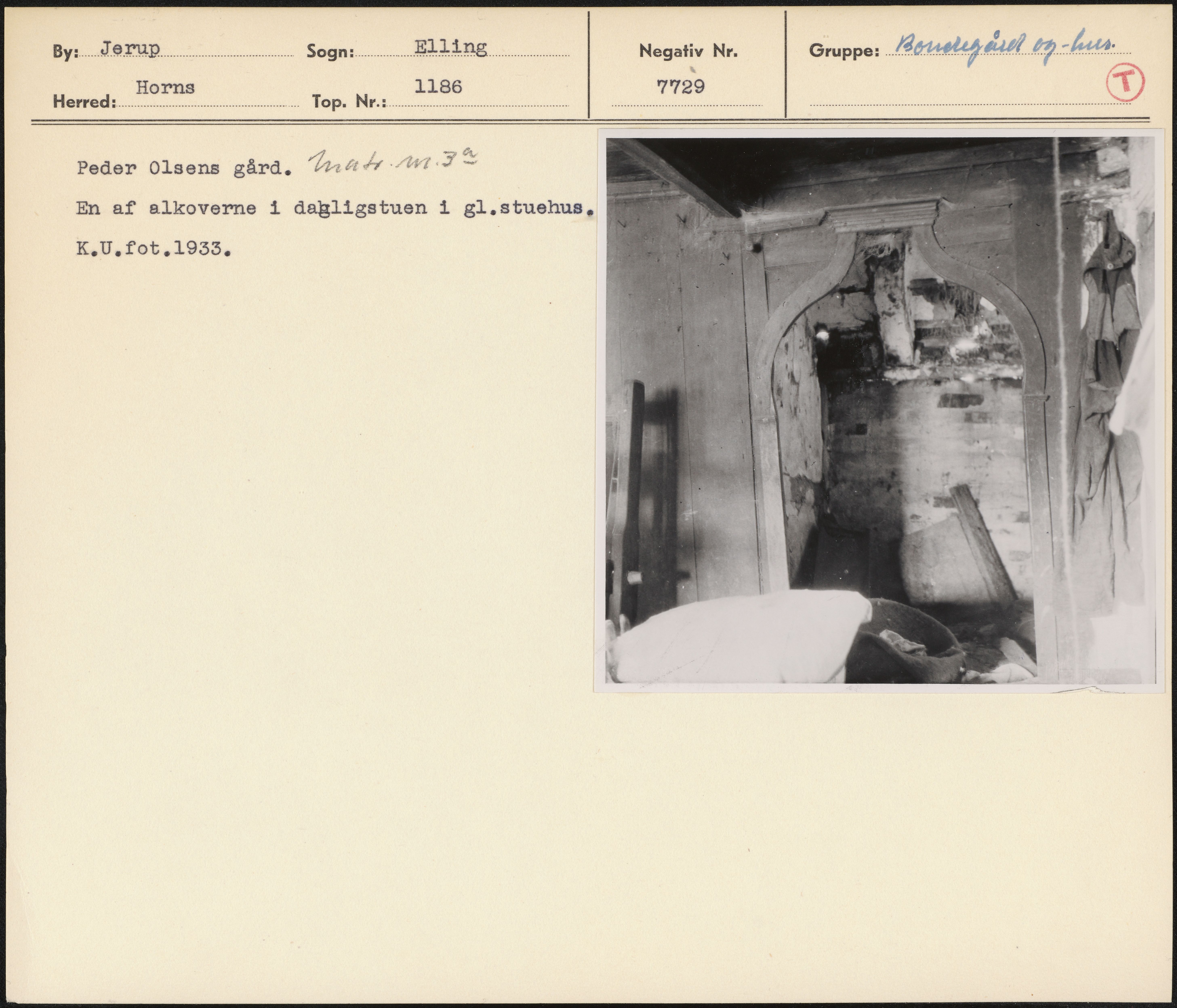 Maskingenkendt tekst fra arkivkort. Peder Olsens gård. Lab ru1I= En af alkoverne i da…ligstuen i gl.stuehus, K.U.fot 1933,