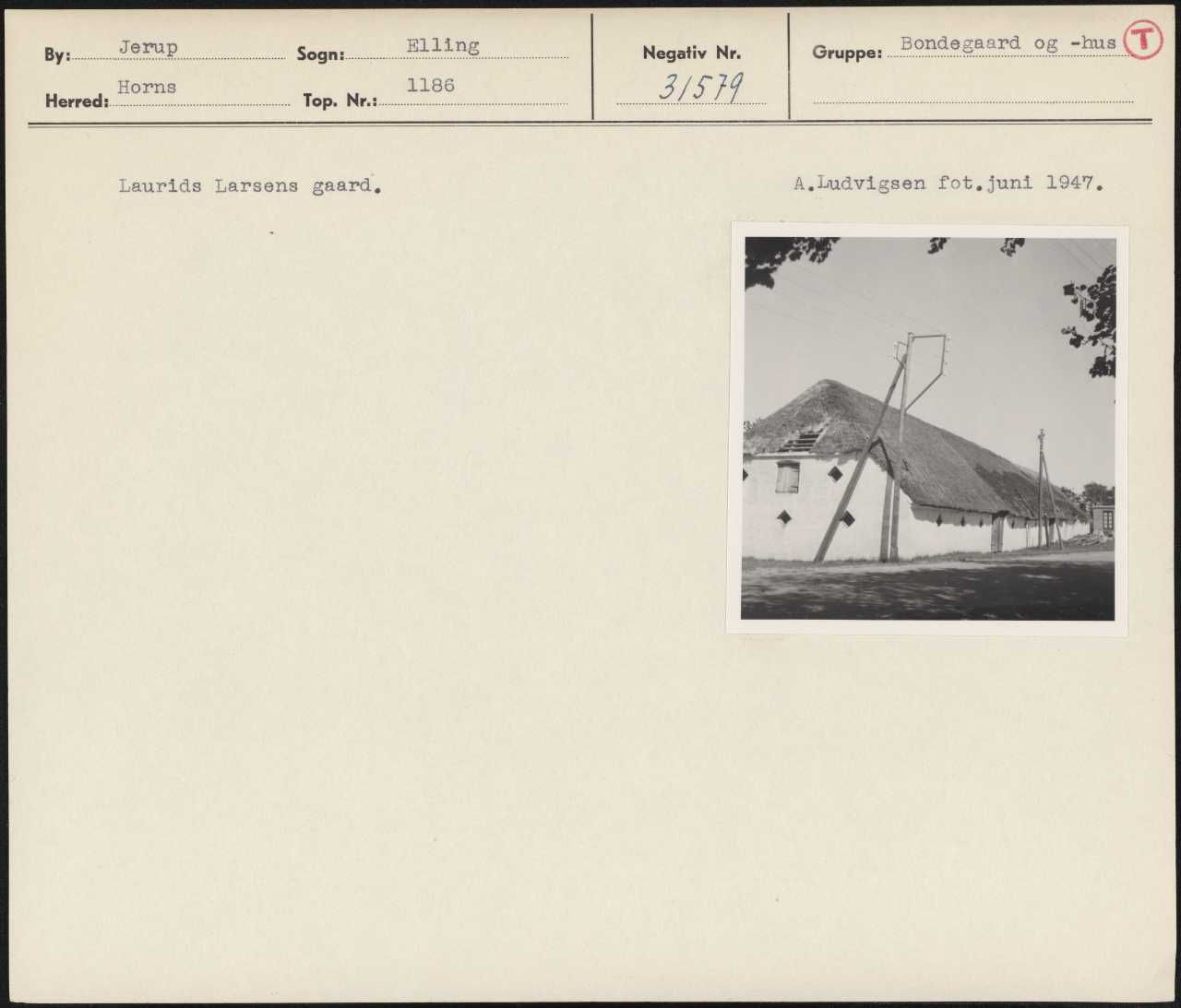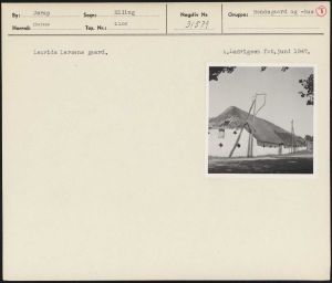 Maskingenkendt tekst fra arkivkort. Laurids Larsens gaard, A,ludvigsen fot,juni 1947,