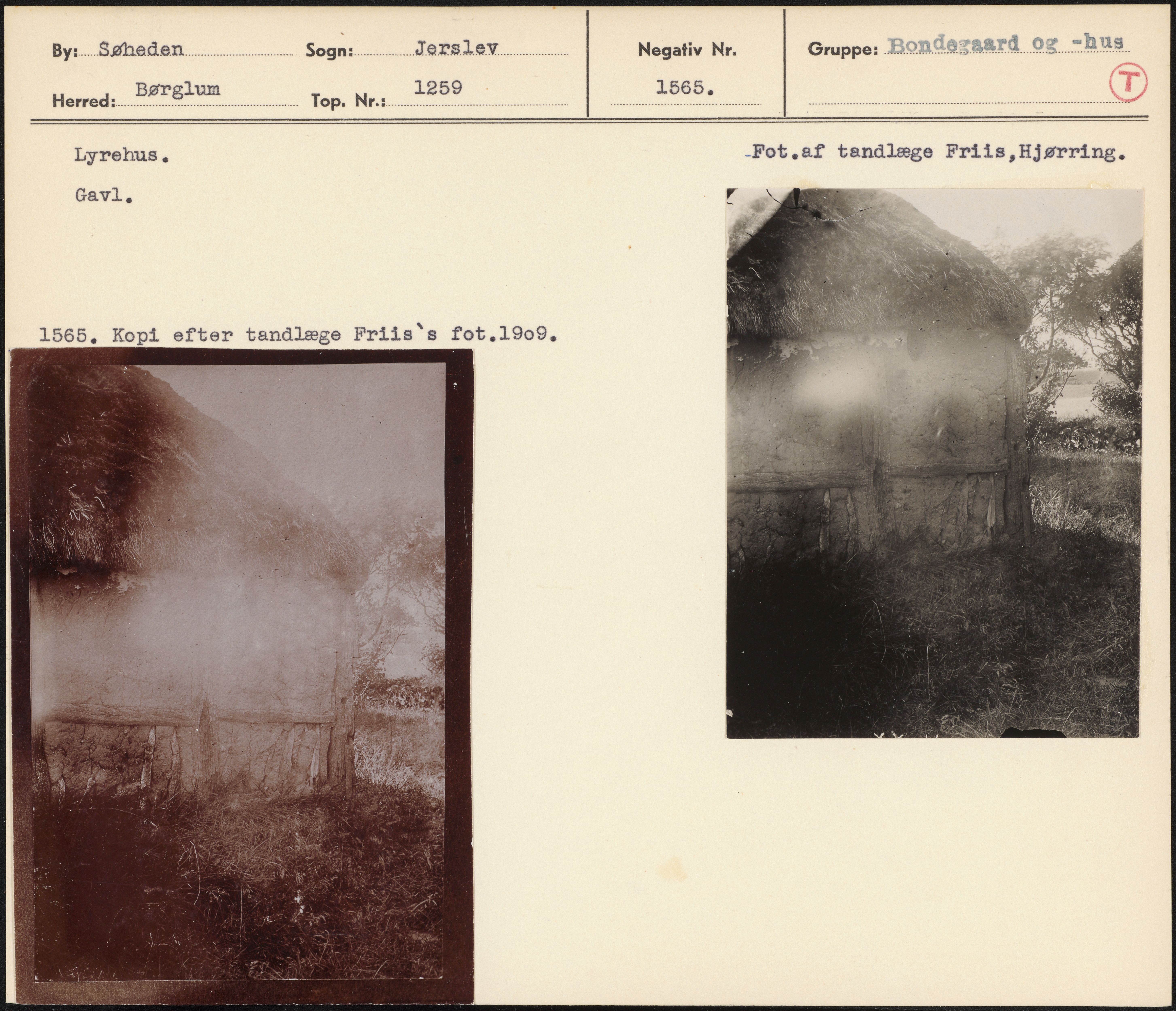 Maskingenkendt tekst fra arkivkort. Lyrehus-Fot ,af tandlæge Friis,Hjørring. Gavl, 1565, Kopi efter tandlæge Friis's fot.1909.