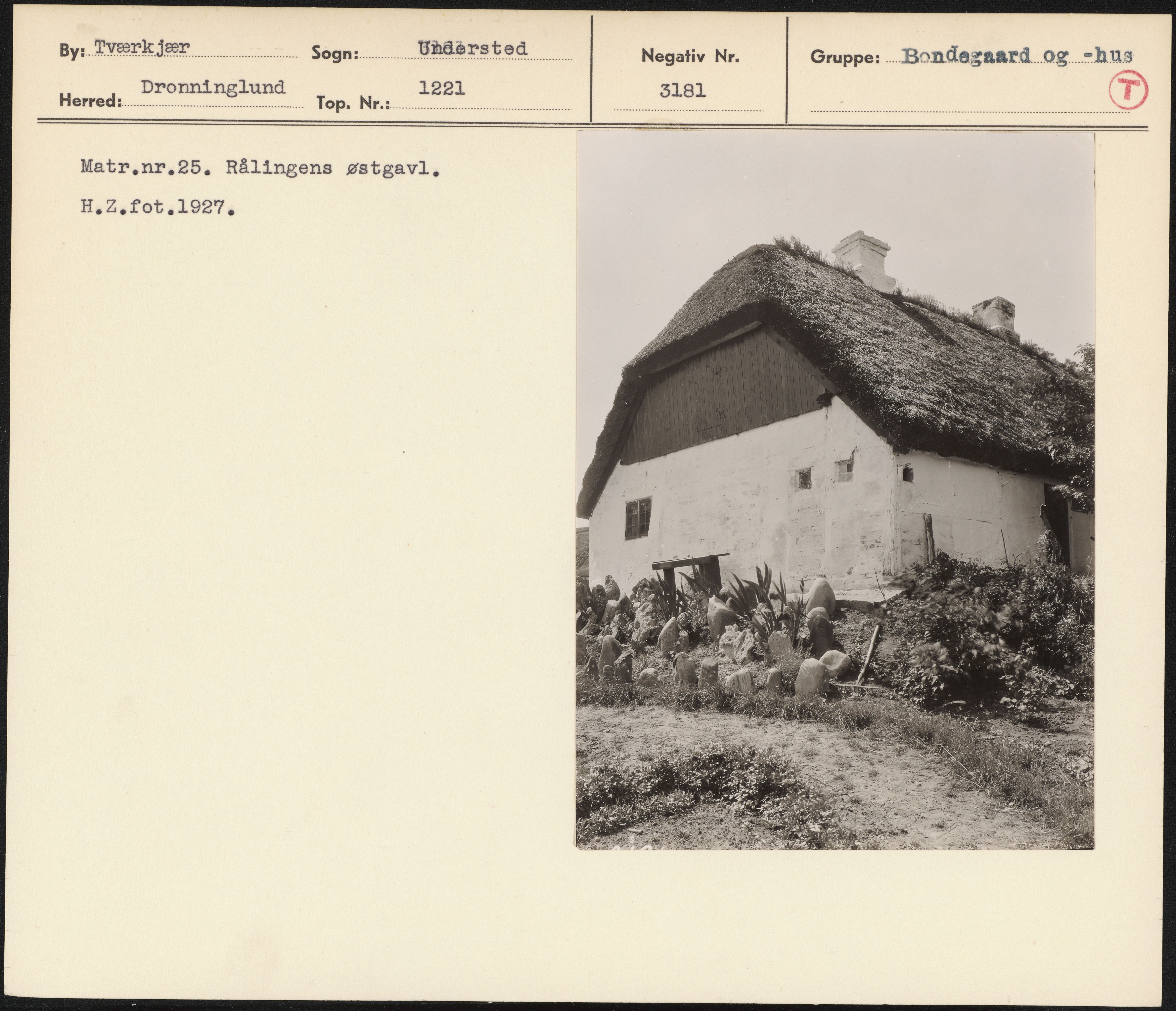 Maskingenkendt tekst fra arkivkort. i Matr.nr.25. Rålingens østgavl, H.Z.fot.1927,